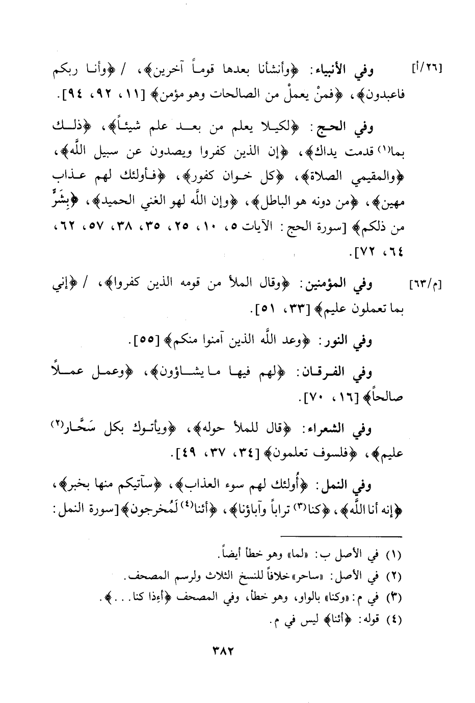 (والمقيمي الصلاة) ، (كل خوان كفور) ، (فأولئك لهم عذاب