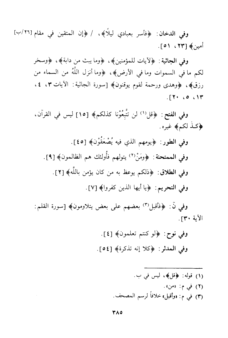 وفي الفتح: (قل لن تتَّبِعُوْنا كذلكم @151، ليس في القرآن.