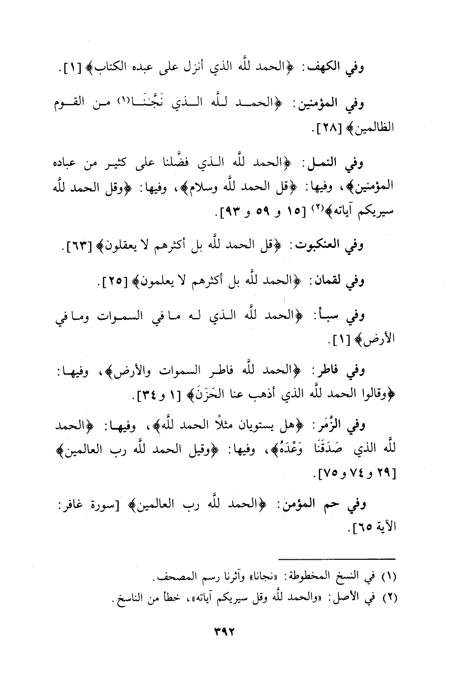 المؤمنين) ، وفيها (قل الحمد للهِ وسلام) ، وفيها: (وقل الحمد لله