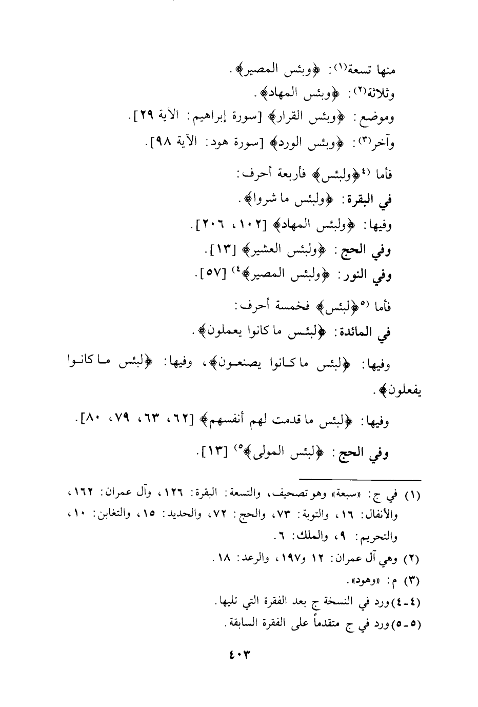 منها تسعة: (وبئس المصير) .