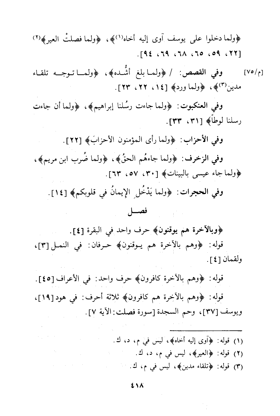 قوله: (وهم بالآخرة كافرون) حرف واحد: في الأعراف 451،.