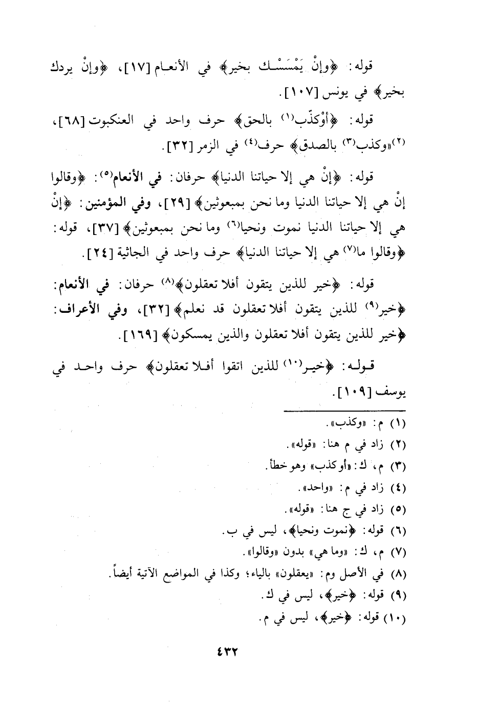 حرفان في الأنعام: (خير للذين يتقون أفلا تعقلون قد نعلم) .
