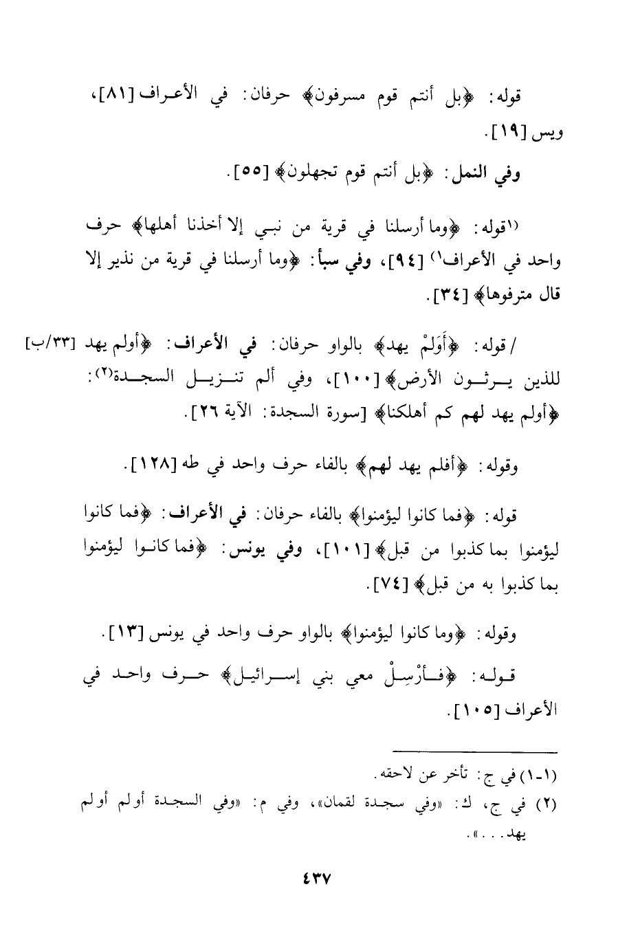 حرفان: في الأعراف: (وأولم يهد للذين يرثون الأرض) .