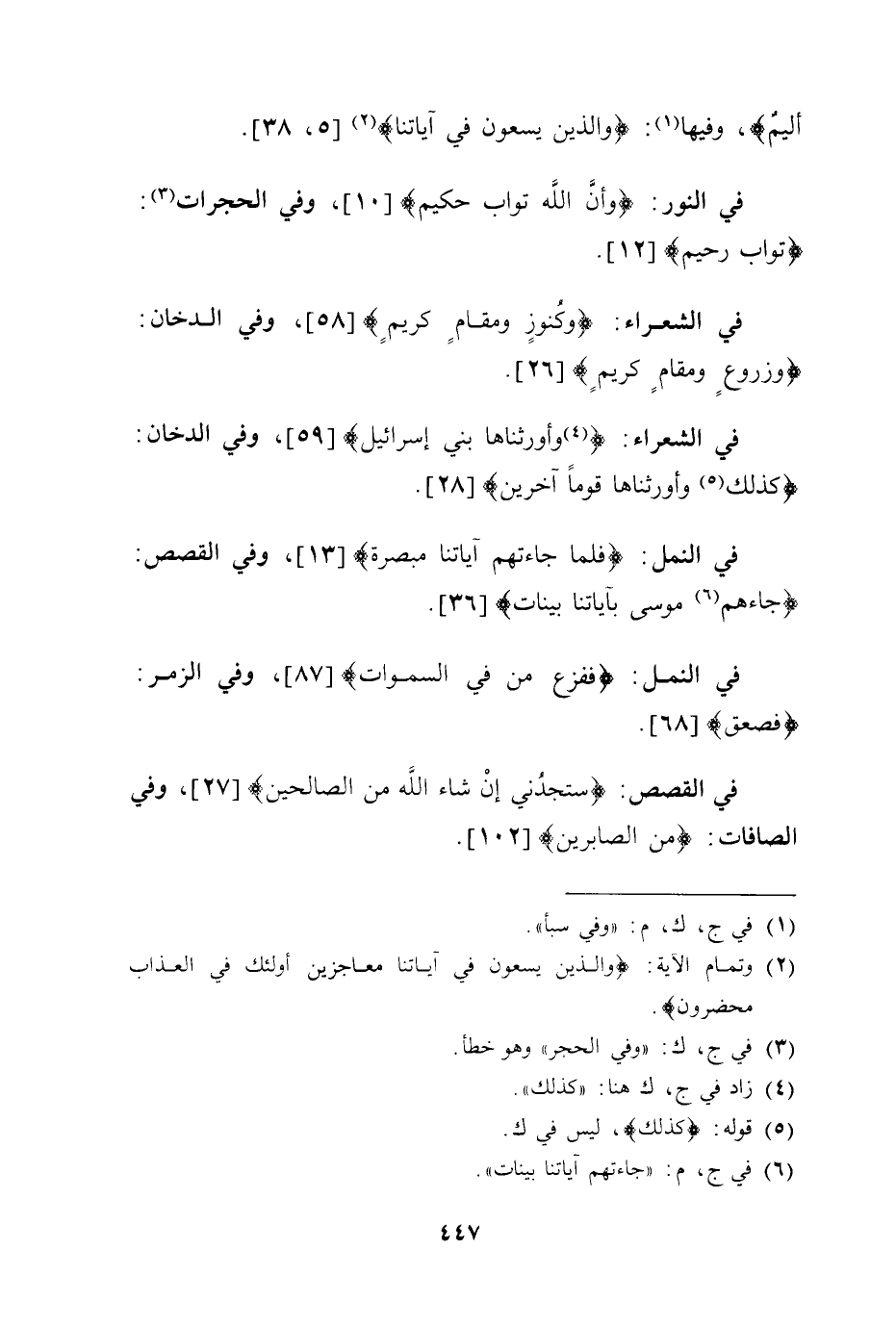 في الشعراء. (وكُنوزٍ ومقامٍ كريمٍ) ، وفي الدخان: (وزروع ومقامً كريم) .