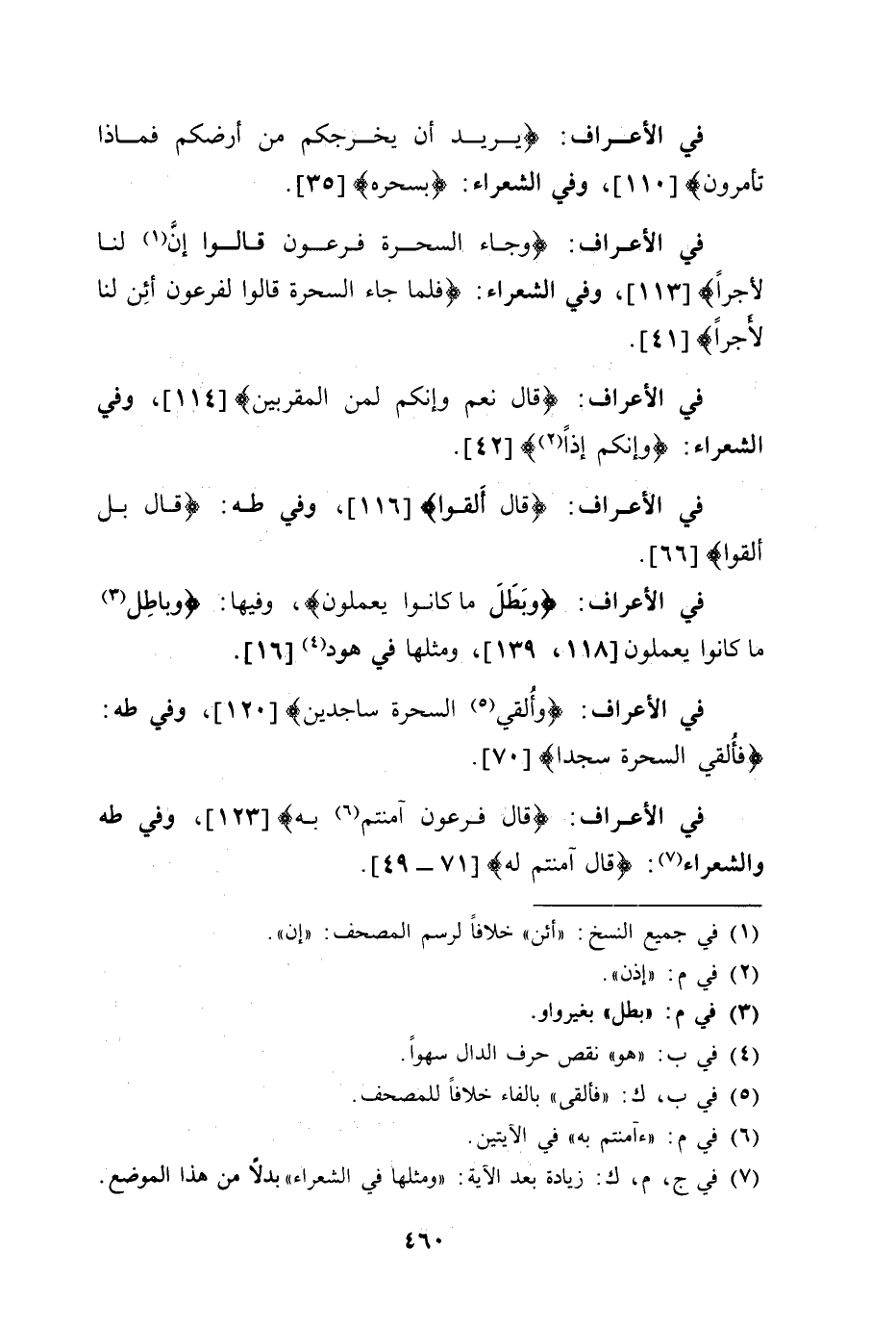 في الأعراف: (وبَطَلَ ما كانوا يعملون) ، وفيها: (وباطِل ما كانوا يعملون) ، ومثلها في هود) .
