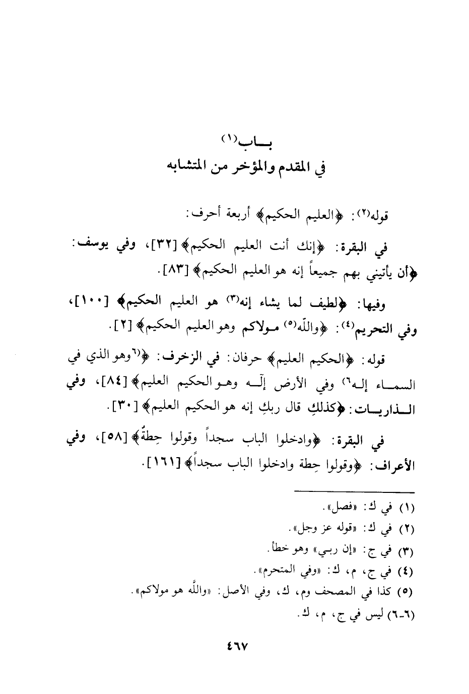 باب في المقدم والمؤخر من المتشابه