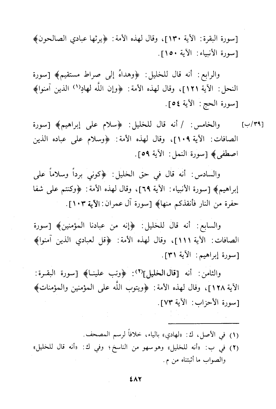 والرابع: أنه قال للخليل: (وهداهُ إلى صراط مستقيم) ، وقال لهذه الأمة: (وإن الله لهادِ الذين آمنوا) .