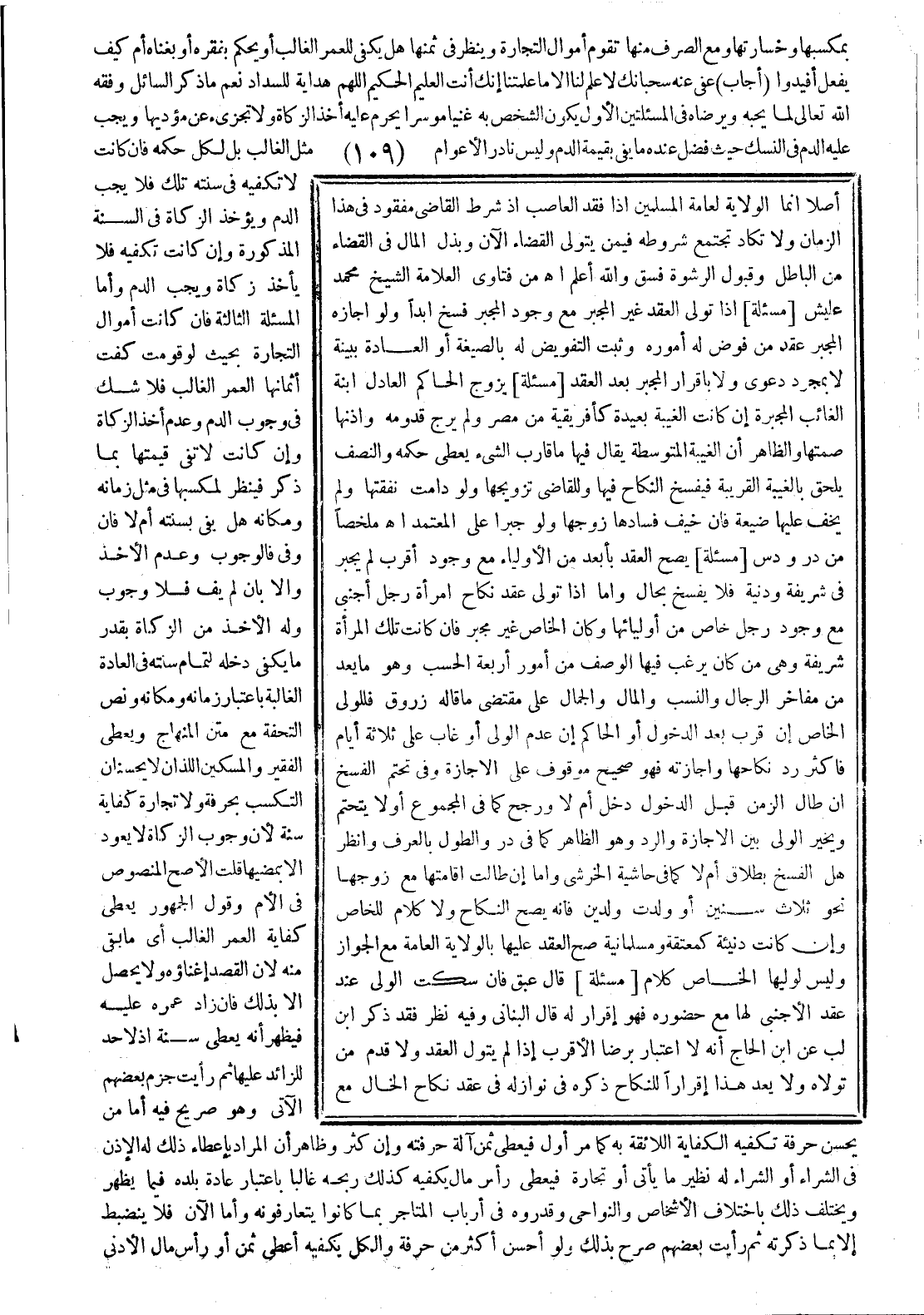 يصح العقد بأبعد من الأولياء مع وجود أقرب لم يجبر في شريفة ودنية، فلا يفسخ بحال، وأما إذا تولى عقد نكاح امرأة رجل أجنبي مع وجود رجل خاص من أوليائها، وكان الخاص غير مجبر، فإن كانت تلك المرأة شريفة وهي من كان يرغب فيها الوصف من أمور أربعة: الحسب، وهو ما يعد من مفاخر الرجال، والنسب، والمال، والجمال على مقتضى ما قاله زروق، فللولي الخاص إن قرب بعد الدخول أو الحاكم إن عدم الولي أو غاب على ثلاثة أيام فأكثر رد نكاحها، وإجازته فهو صحيح موقوف على الإجازة وفي تحتم الفسخ إن طال الزمن قبل الدخول دخل أم لا، ورجح كما في المجموع أو لا يتحتم ويخير الولي بين الإجازة والرد وهو الظاهر كما في در والطول بالعرف، وانظر هل الفسخ بطلاق أم لا كما في حاشية الخرشي، وأما إن طالت إقامتها مع زوجها نحو ثلاث سنين أو ولدت ولدين فإنه يصح النكاح ولا كلام للخاص، وإن كانت دنيئة كمعتقة ومسلمانية صح العقد عليها بالولاية العامة مع الجواز وليس لوليها الخاص كلام.