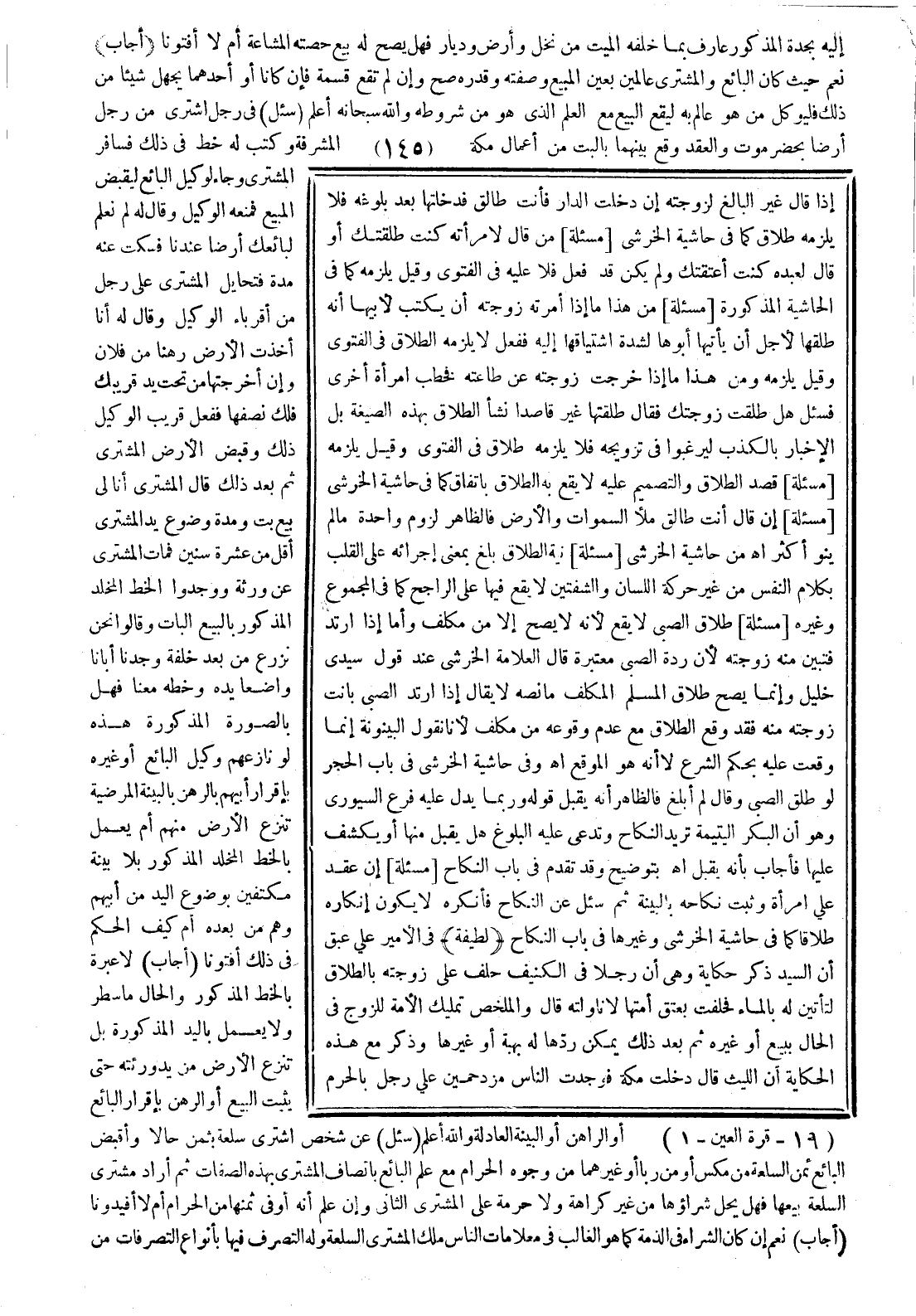 (لطيفة) في الأمير على (عبق) أن السيد ذكر حكاية، وهي: أن رجلاً في الكنيف حلف على زوجته بالطلاق لتأتين له بالماء، فحلفت بعتق أمتها لا ناولته، قال: والملخص تمليك الأمة للزوج في الحال ببيع أو غيره، ثم بعد ذلك يمكن ردّها له بهبة أو غيرها، وذكر مع هذه الحكاية أن الليث قال: دخلت مكة فوجدت الناس مزدحمين على رجل بالحرم،
