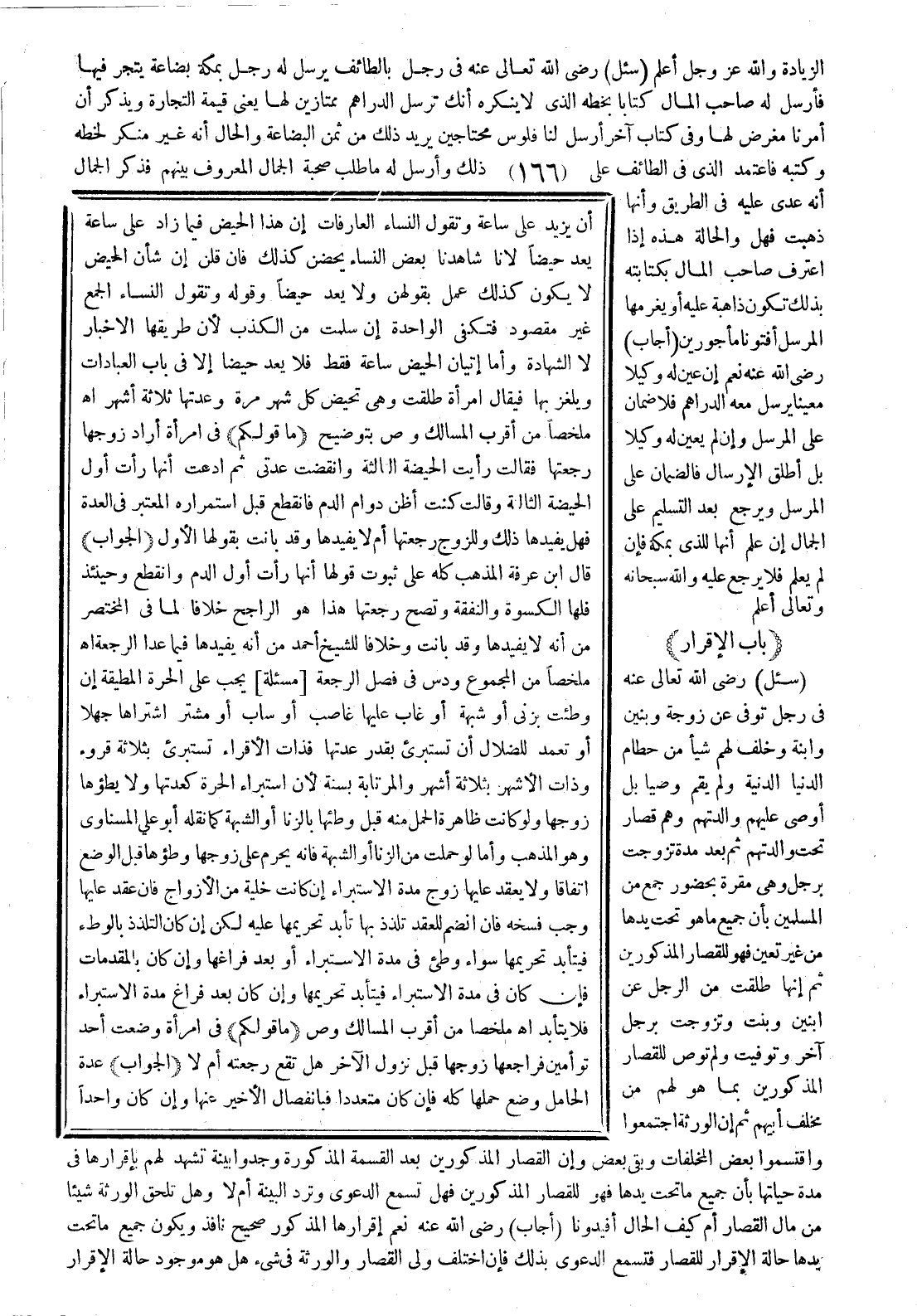 (الجواب) قال ابن عرفة: المذهب كله على ثبوت قولها أنها رأت أول الدم وانقطع، وحينئذٍ فلها الكسوة والنفقة وتصح رجعتها، هذا هو الراجح خلافًا لما في المختصر من أنه لا يفيدها وقد بانت، وخلافًا للشيخ أحمد من أنه يفيدها فيما عدا الرجعة اهـ. ملخصًا من المجموع و (دس) في فصل الرجعة.