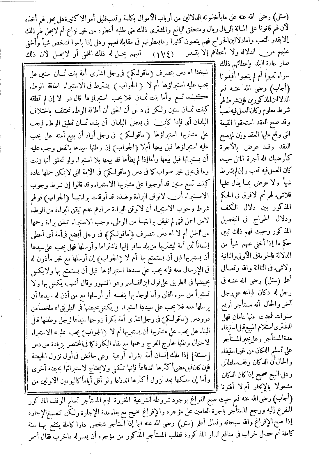 (الجواب) إن وطئها سيدها بالفعل وجب عليه أن يستبرئها قبل بيعها، وأما إذا لم يطأها فله بيعها بلا استبراء ولو تحقق أنها زنت وما في (عبق) غير صواب كما في (دس).