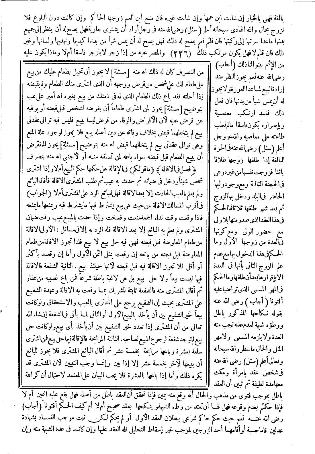 الثانية: الشفعة فالإقالة فيها ليست بيعا، ولا حل بيع بل هي لاغية باطلة شرعا، فمن باع نصيبه من عقار ثم أقال المشتري منه فالشفعة ثابتة للشريك بما وقعت به الإقالة، وعهدة الشفيع على المشتري بحيث إن الشفيع يرجع على المشتري بالعيب والاستحقاق، ولو كانت بيعا لخير الشفيع بين أن يأخذ بالبيع الأول أو الثاني لما يأتي في الشفعة إن شاء الله تعالى من أن المشتري إذا تعدد خير الشفيع بين أن يأخذ بأي بيع، ولو كانت حل بيع لم توجد شفعة لرجوع المبيع لصاحبه.