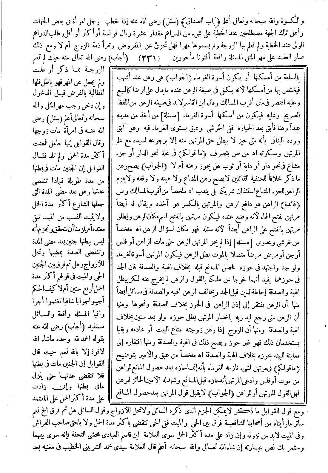 (ما قولكم) في غلة نحو الدار أو جزء مشاع في نحو دار أو دابة أو ثوب، هل يجوز رهنه أم لا؟