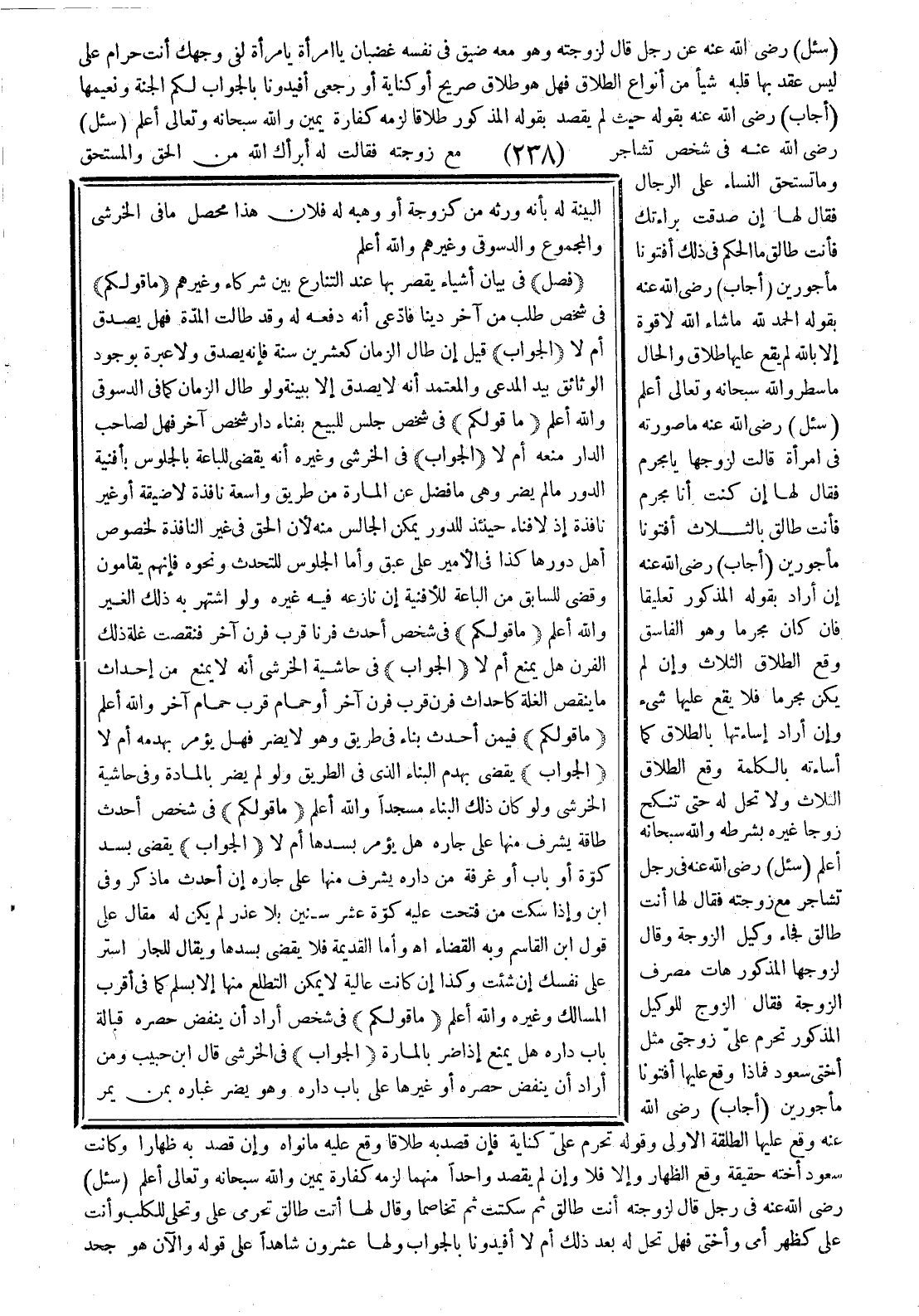 (ما قولكم) في شخص أراد أن ينفض حصره قباله باب داره، هل يمنع إذا ضر بالمارة.