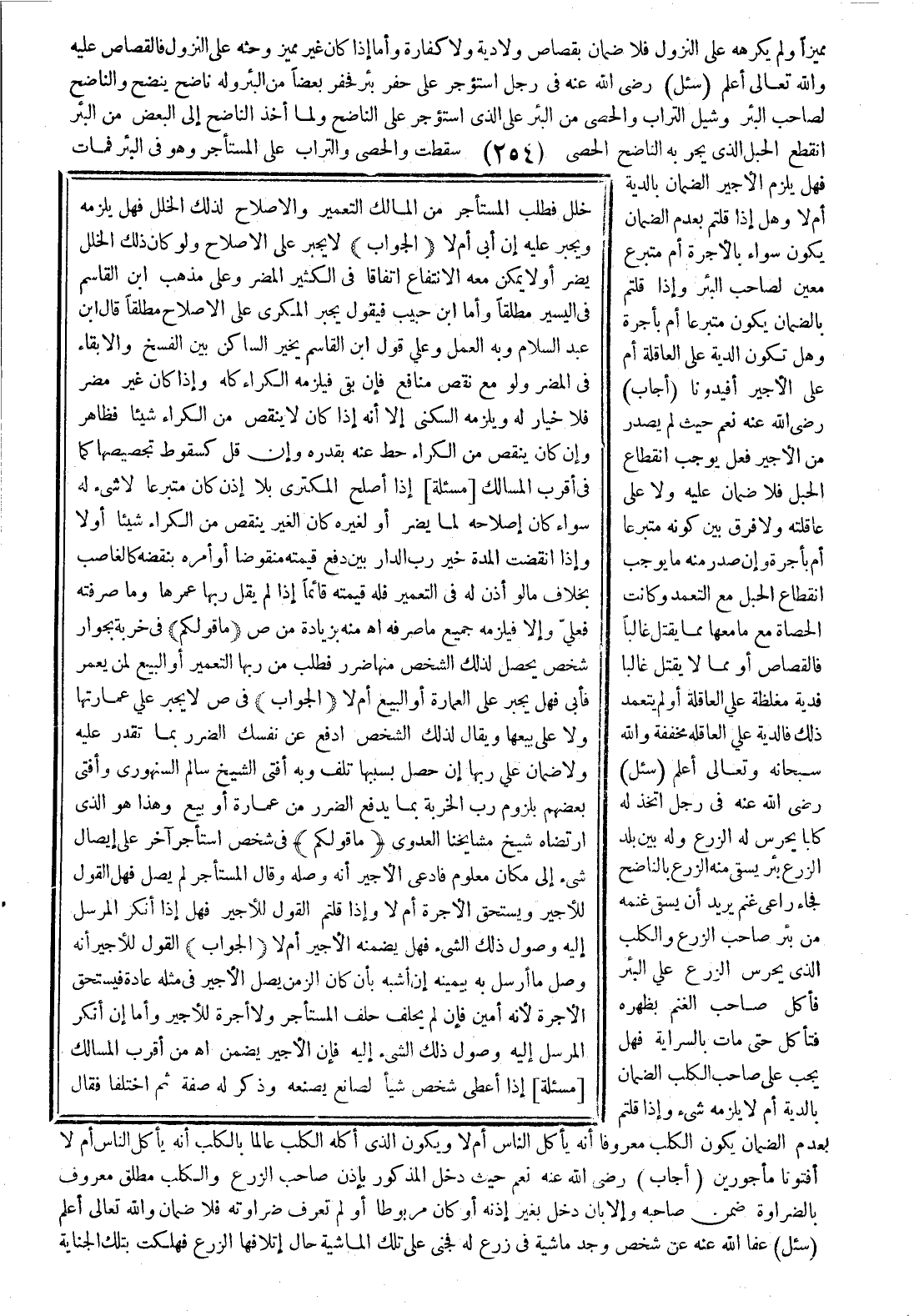 (الجواب) في ص لا يجبر على عمارتها ولا على بيعها، ويقال لذلك الشخص: ادفع عن نفسك الضرر بما تقدر عليه، ولا ضمان على ربها إن حصل بسببها تلف، وبه أفتى الشيخ سالم السنهوري، وأفتى بعضهم بلزوم رب الخربة بما يدفع الضرر من عمارة أو بيع، وهذا هو الذي ارتضاه شيخ مشايخنا العدوي.