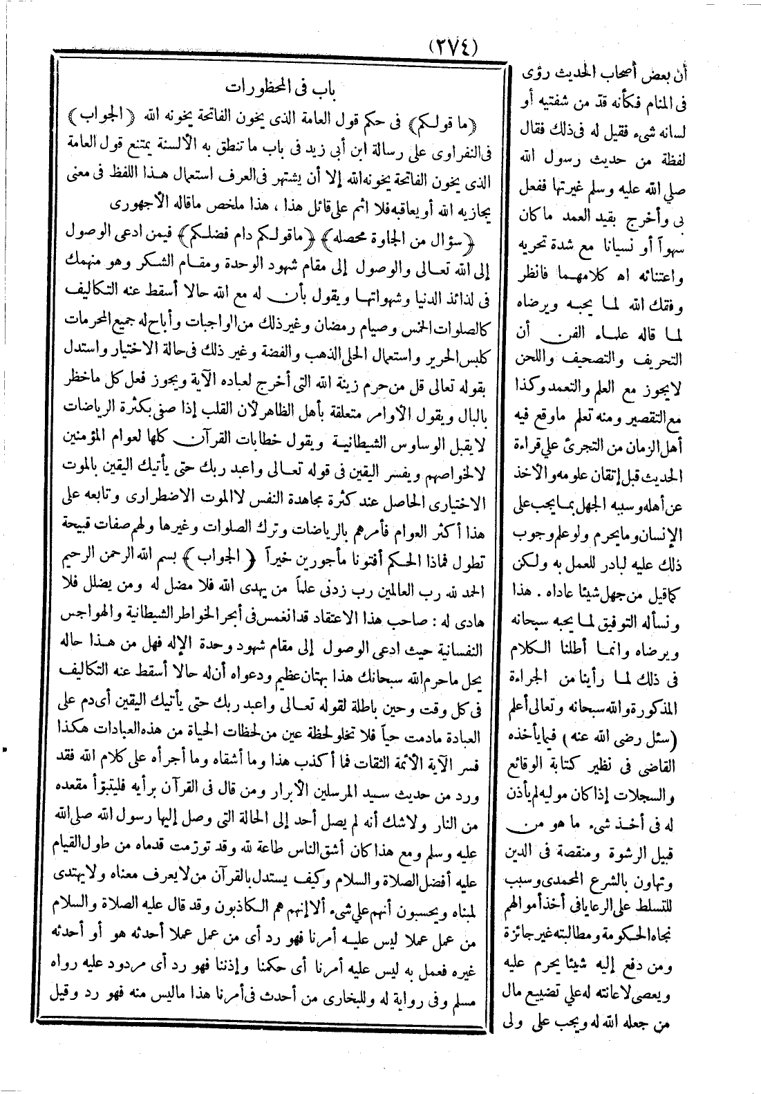 (الجواب) في النفراوي على رسالة ابن أبي زيد في باب ما تنطق به الألسنة: يمتنع قول العامة: الذي يخون الفاتحة يخونه الله، إلا أن يشتهر في العرف استعمال هذا اللفظ في معنى يجازيه الله أو يعاقبه فلا إثم على قائل هذا، هذا ملخص ما قاله الأجهوري.