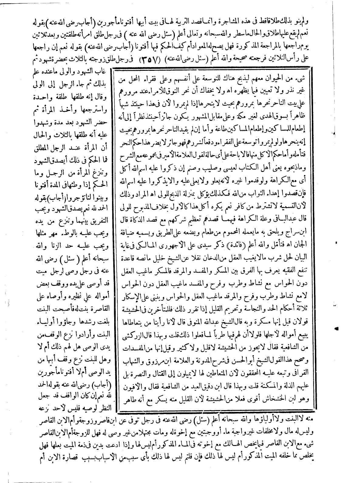 (فائدة) ذكر سيدي علي الأجهوري المالكي في غاية البيان لحل شرب ما لا يغيب العقل من الدخان، نقلا عن الشيخ خليل ما نصه قاعدة تنفع الفقيه يعرف بها الفرق بين المسكر والمفسد والمرقد، فالمسكر ما غيب العقل دون الحواس مع نشاط وطرب وفرح، والمفسد ما غيب العقل دون الحواس لا مع نشاط وطرب وفرح والمرقد، ما غيب العقل والحواس، وينبني على الإسكار ثلاثة أحكام: الحد، والنجاسة، وتحريم القليل إذا تقرر ذلك، فللمتأخرين في الحشيشة قولان: قيل: إنها مسكرة، وبه قال الشيخ عبد الله المنوفي قال: لأنا رأينا من يتعاطاها يبيع أمواله لأجلها، فلولا أن لهم فيها طربا لما فعلوا ذلك، قلت: وبهذا قال الزركشي من الشافعية، فقال: لا يجوز من الحشيشة لا قليل ولا كثير، وقيل: إنها من المفسدات وصحح هذا القول الشيخ أبو الحسن في شرح المدونة، والعلامة ابن مرزوق، والشهاب القرافي وتبعه عليه المحققون؛ لأن المتعاطين لها لا يميلون إلى القتال والنصرة بل عليهم الذلة والمسكنة، قلت: وبهذا قال ابن دقيق العيد من الشافعية فقال: والأفيون وهو لبن الخشخاش أقوى فعلا من الحشيشة؛ لأن القليل منه يسكر مع أنه طاهر