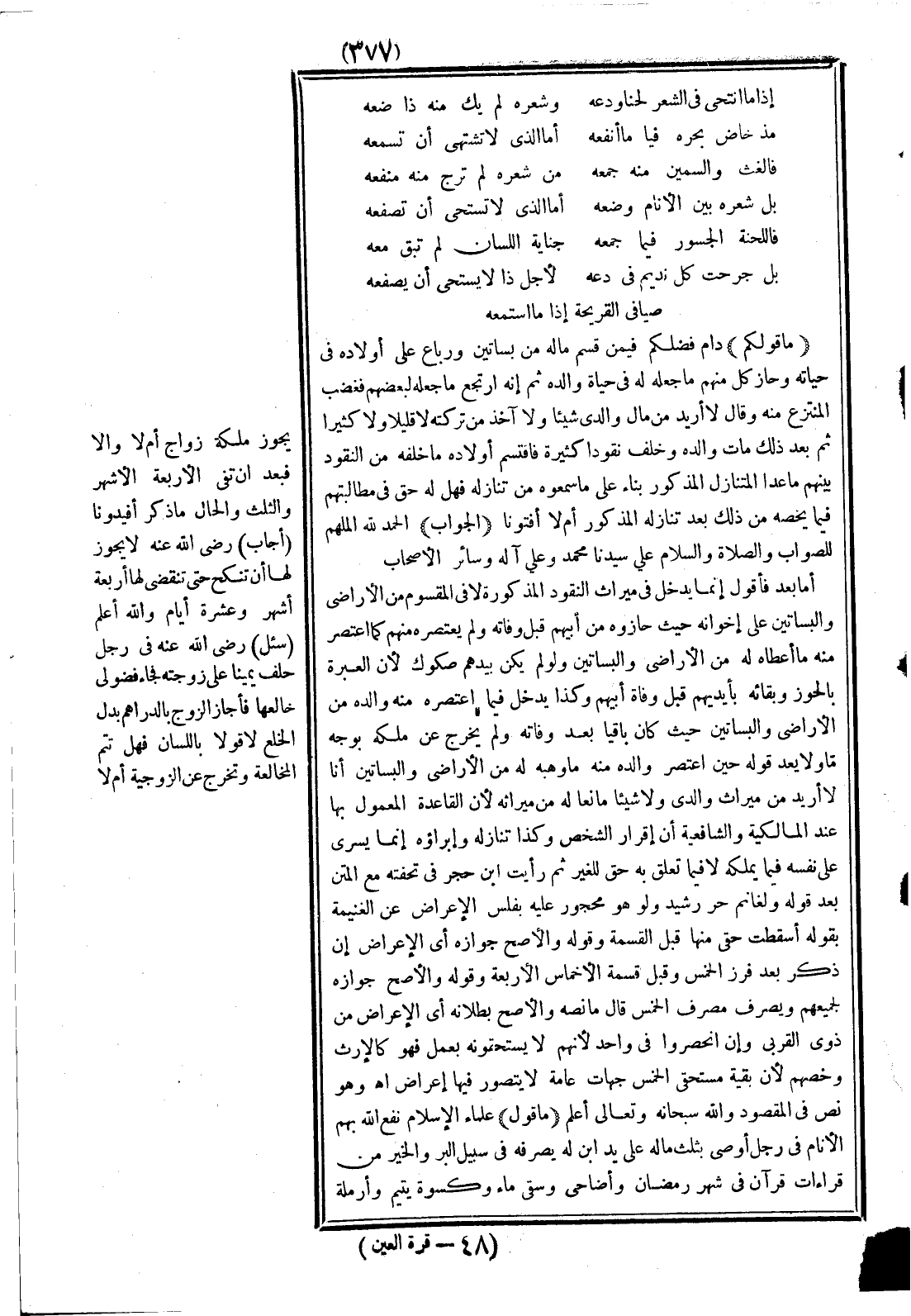 (ما قولكم) دام فضلكم، فيمن قسم ماله من بساتين ورباع على أولاده في حياته، وحاز كل منهم ما جعله له في حياة والده، ثم إنه ارتجع ما جعله لبعضهم، فغضب المنتزع منه، وقال: لا أريد من مال والدي شيئا، ولا آخذ من تركته لا قليلا ولا كثيرا، ثم بعد ذلك مات والده، وخلف نقودا كثيرة فاقتسم أولاده ما خلفه من النقود بينهم ما عدا المتنازل المذكور بناء على ما سمعوه من تنازله، فهل له حق في مطالبتهم فيما يخصه من ذلك بعد تنازله المذكور أم لا أفتونا؟