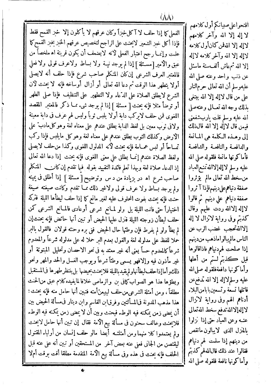 إذا لم يوجد نية ولا بساط ولا عرف قولي ولا فعلي فالمعتبر العرف الشرعي؛ إن كان المتكلم صاحب شرع فإذا حلف أنه لا يصلي أو لا يتطهر هذا الوقت، ثم دعا الله تعالى أو أزال أوساخه؛ فإنه لا يحنث؛ لأن الشرع لا يطلق الصلاة على الدعاء، ولا التطهير على التنظيف فإذا صلى الظهر أو توضأ مثلاً فإنه يحنث.