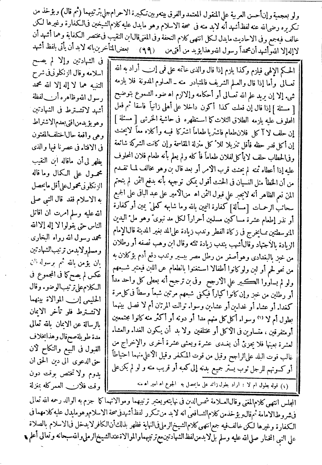 الحكم الإلهي، فيلزم، وكذا يلزم إذا قال: والذي خاتمه على فمي، إن أراد به الله تعالى، وأما إذا قال: والعلم الشريف، فالمتبادر منه ـ العلوم المدونة فلا يلزمه شيء إلا أن يريد علم الله تعالى أو أحكامه وإلا لزم. اهـ ضوء الشموع بتوضيح.