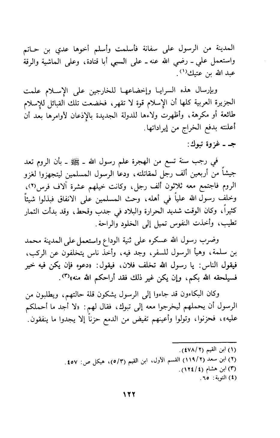 (2) ابن سعد (119/ 2) القسم الأول، ابن القيم (5/ 3)، هيكل ص: 457.