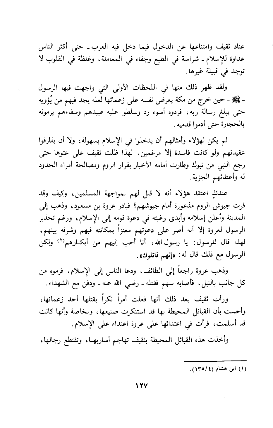 الرسول لعروة إلا أنه أصر على دعوتهم معتزا بمكانته فيهم وشرفه بينهم،
