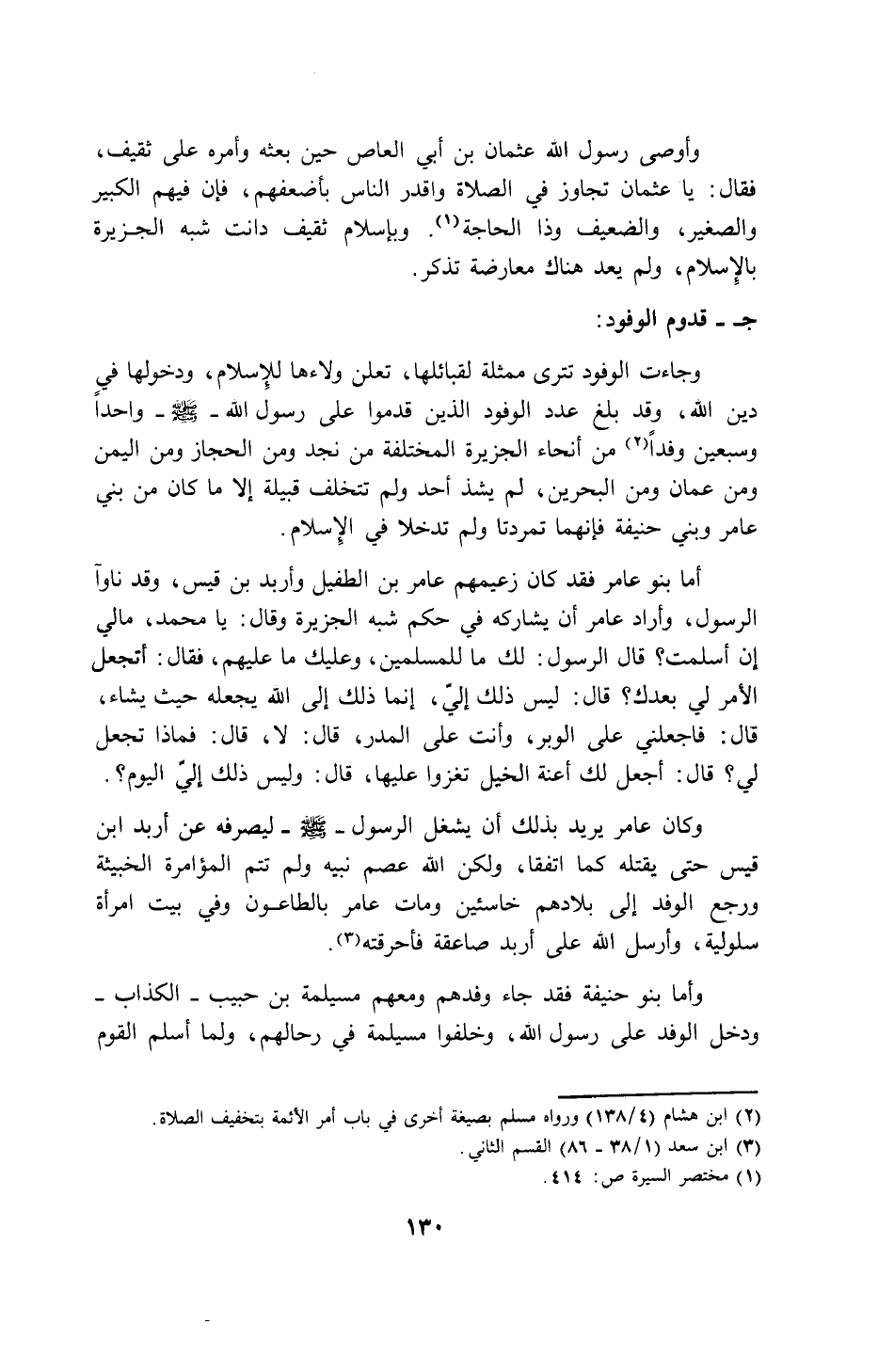 (2) ابن هشام (138/ 4) ورواه مسلم بصيغة أخرى في باب أمر الأئمة بتخفيف الصلاة.