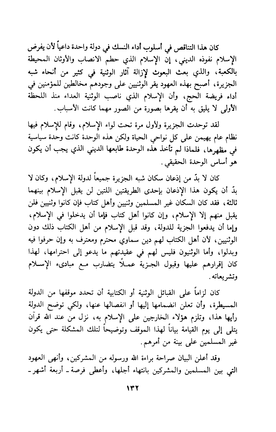 الجزيرة، أصبح بهذه العهود يقر الوتنيين على وجودهم مخالطين للمؤمنين في