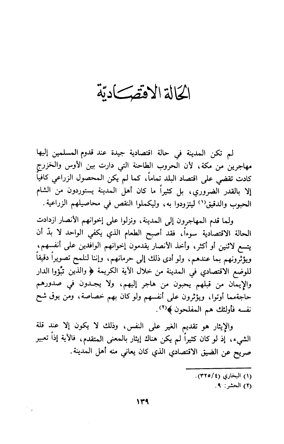 للوضع الاقتصادي في المدينة من خلال الآية الكريمة " والذين تبؤوا الدار