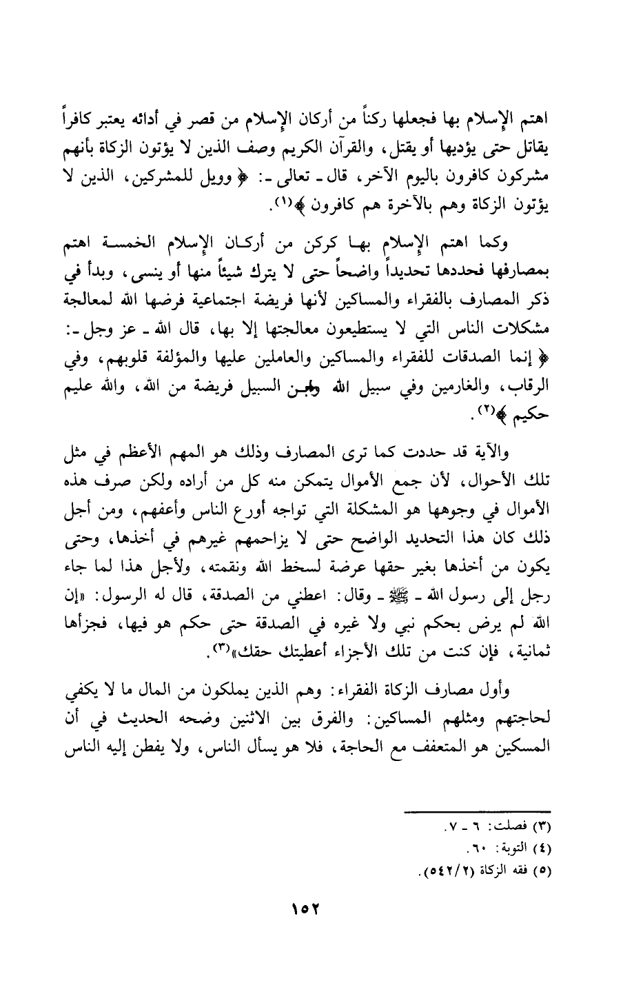 ذكر المصارف بالفقراء والمساكين لأنها فريضة اجتماعية فرضها الله لمعالجة