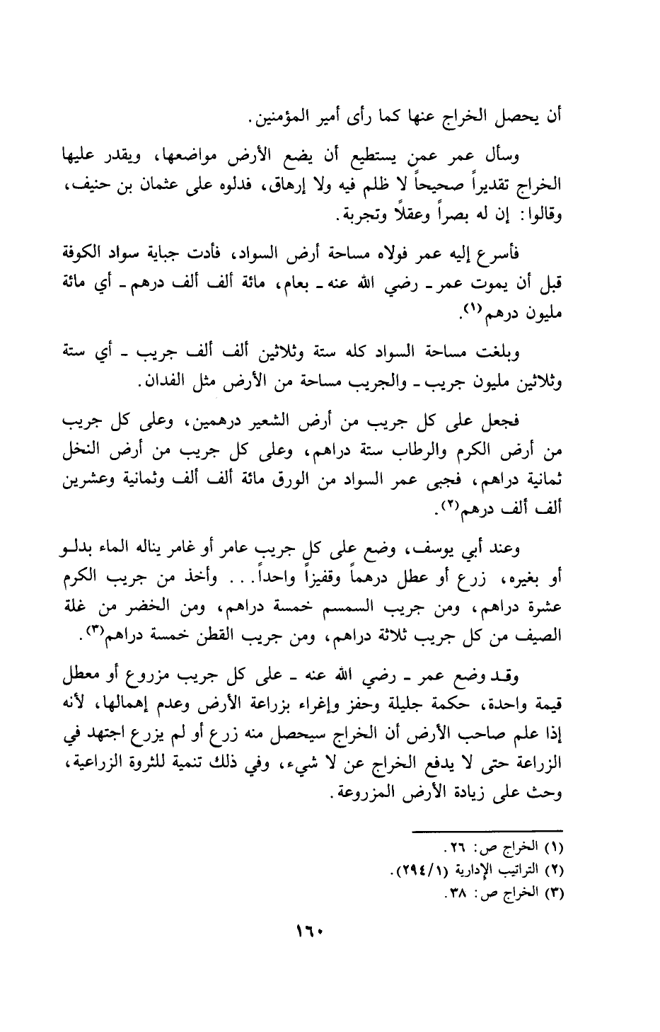 الزراعة حتى لا يدفع الخراج عن لا شيء، وفي ذلك تنمية للثروة الزراعية،