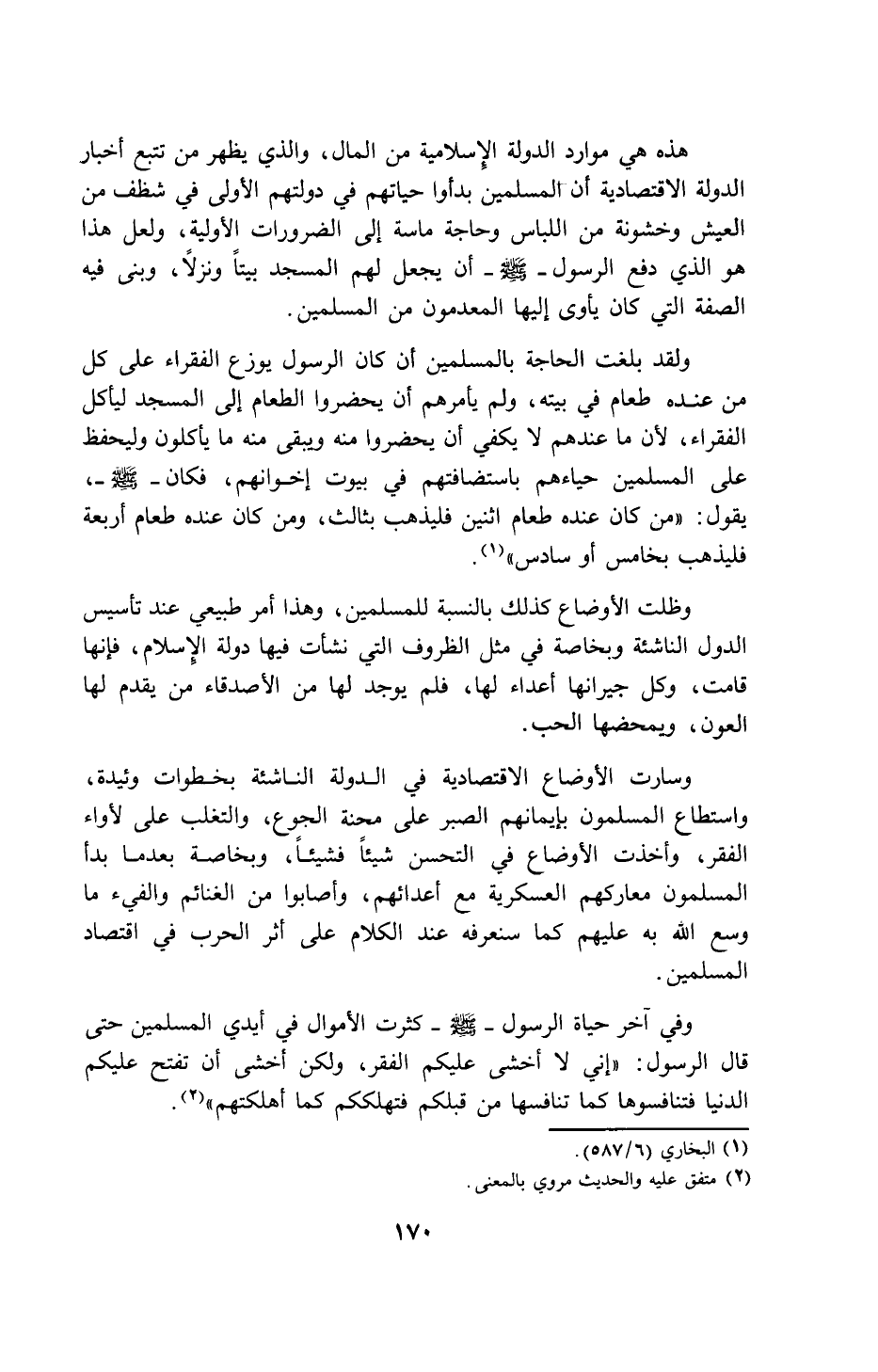 الدولة الاقتصادية أن المسلمين بدأوا حياتهم في دولتهم الأولى في شظف من