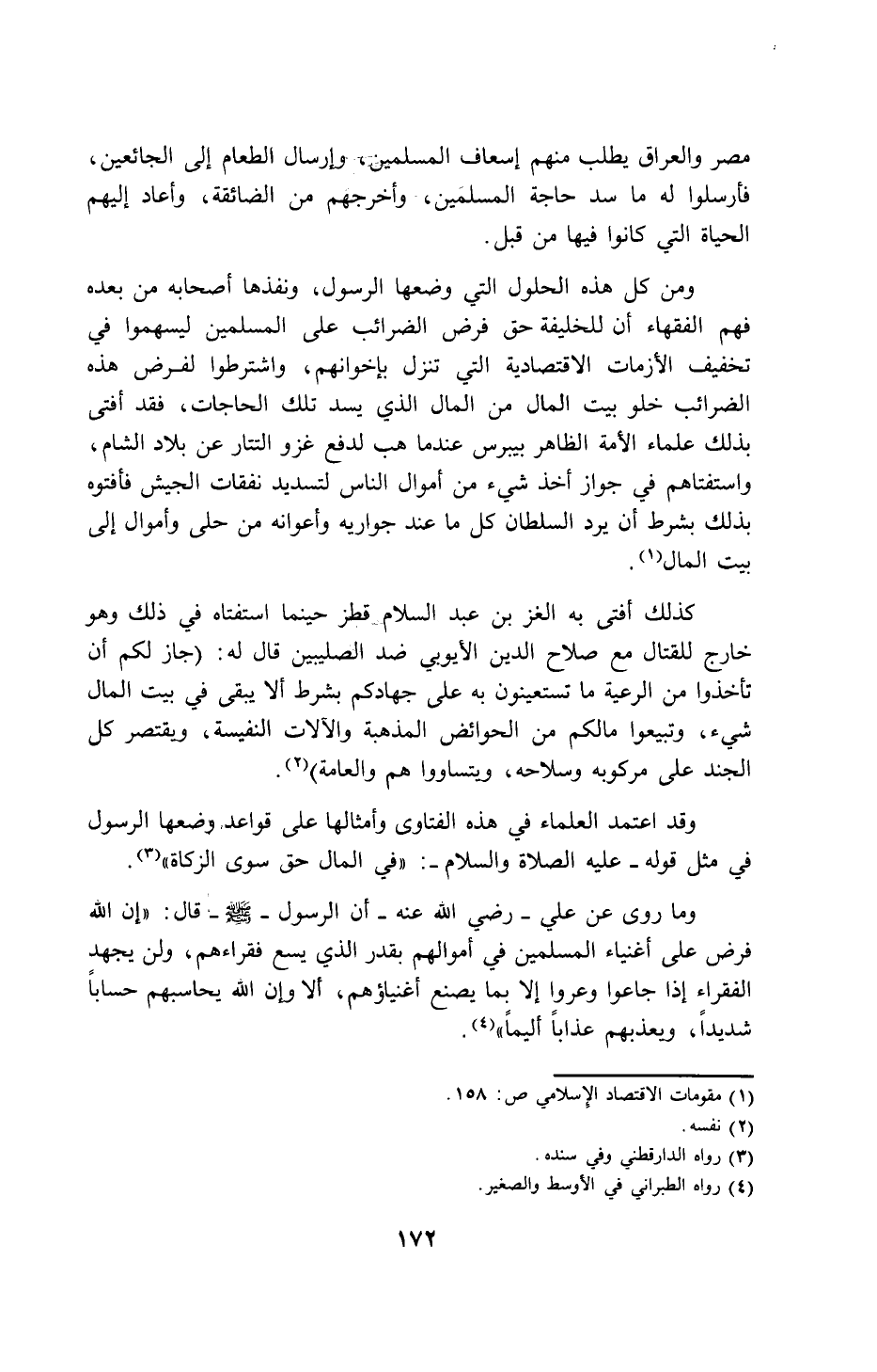 (1) مقومات الاقتصاد الإسلامي ص: 158.