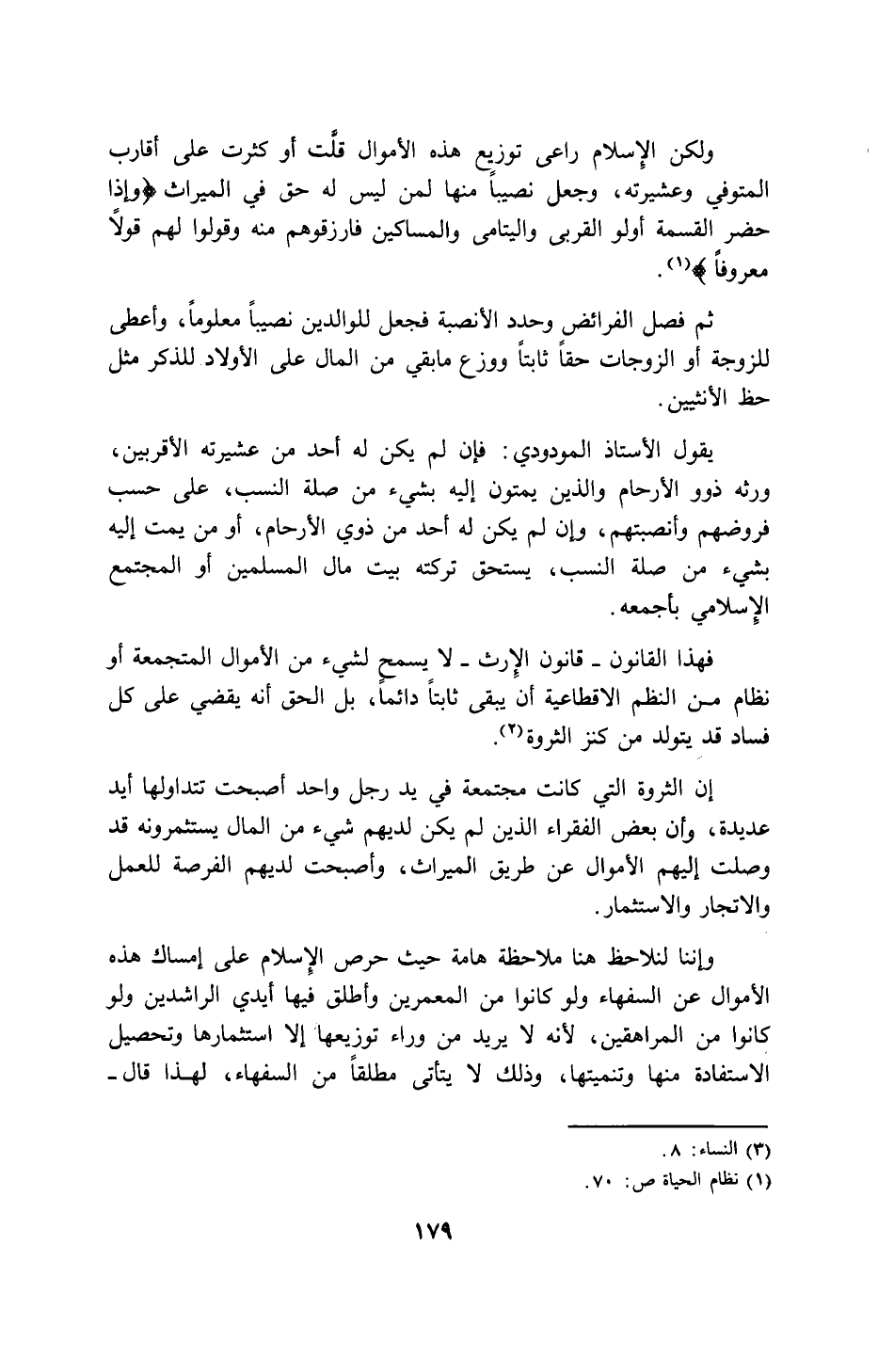 فهذا القانون - قانون الإرث - لا يسمح لشيء من الأموال المتجمعة أو