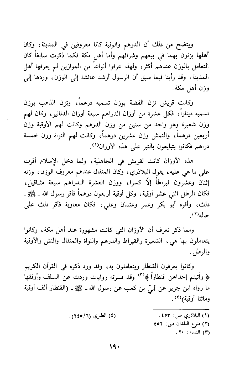 هذه الأوزان كانت لقريش في الجاهلية، ولما دخل الإسلام أقرت