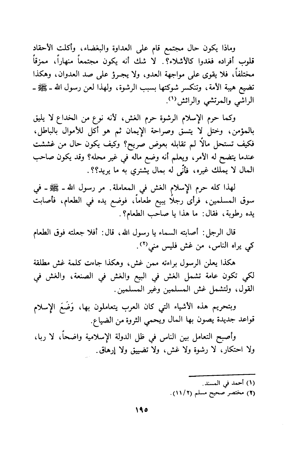 ولا احتكار لا رشوة ولا غش، ولا تضييق ولا إرهاق.