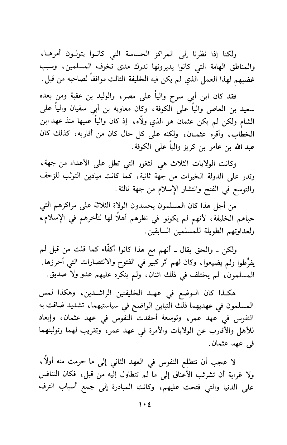 104…ولكنا إذا نظرنا إلى المراكز الحساسة التي كانوا يتولون أمرها، والمناطق الهامة التي كانوا يديرونها ندرك مدى تخوف المسلمين، وسبب غضبهم لهذا العمل الذي لم يكن فيه الخليفة الثالث موافقاً لصاحبه من قبل.