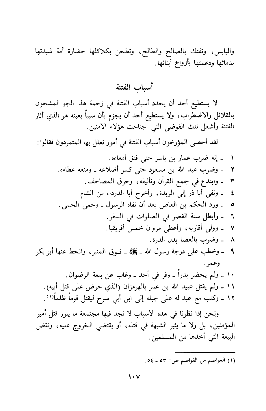 ونحن إذا نظرنا في هذه الأسباب لا نجد فيها مجتمعة ما يبرز قتل أمير المؤمنين، بل ولا ما يثير الشبهة في قتله، أو يقتضي الخروج عليه، ونقض البيعة التي أخذها من المسلمين.