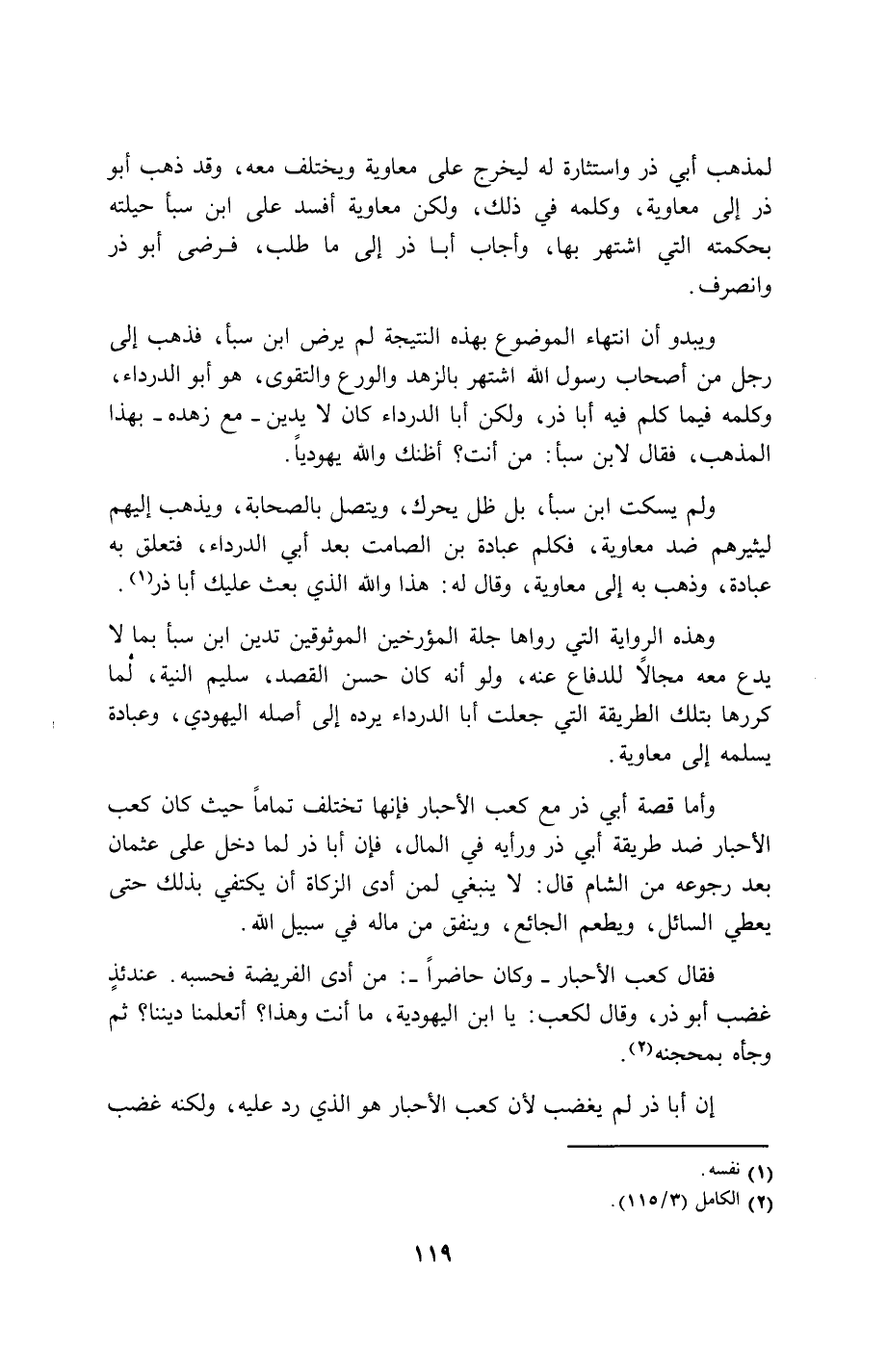 إن أبا ذر لم يغضب لأن كعب الأحبار هو الذي رد عليه، ولكنه غضب…