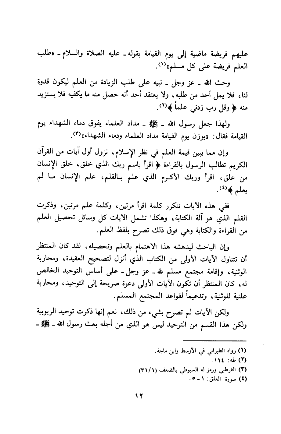 12…عليهم فريضة ماضية إلى يوم القيامة بقوله - عليه الصلاة والسلام - وطلب العلم فريضة على كل مسلم)) (1).