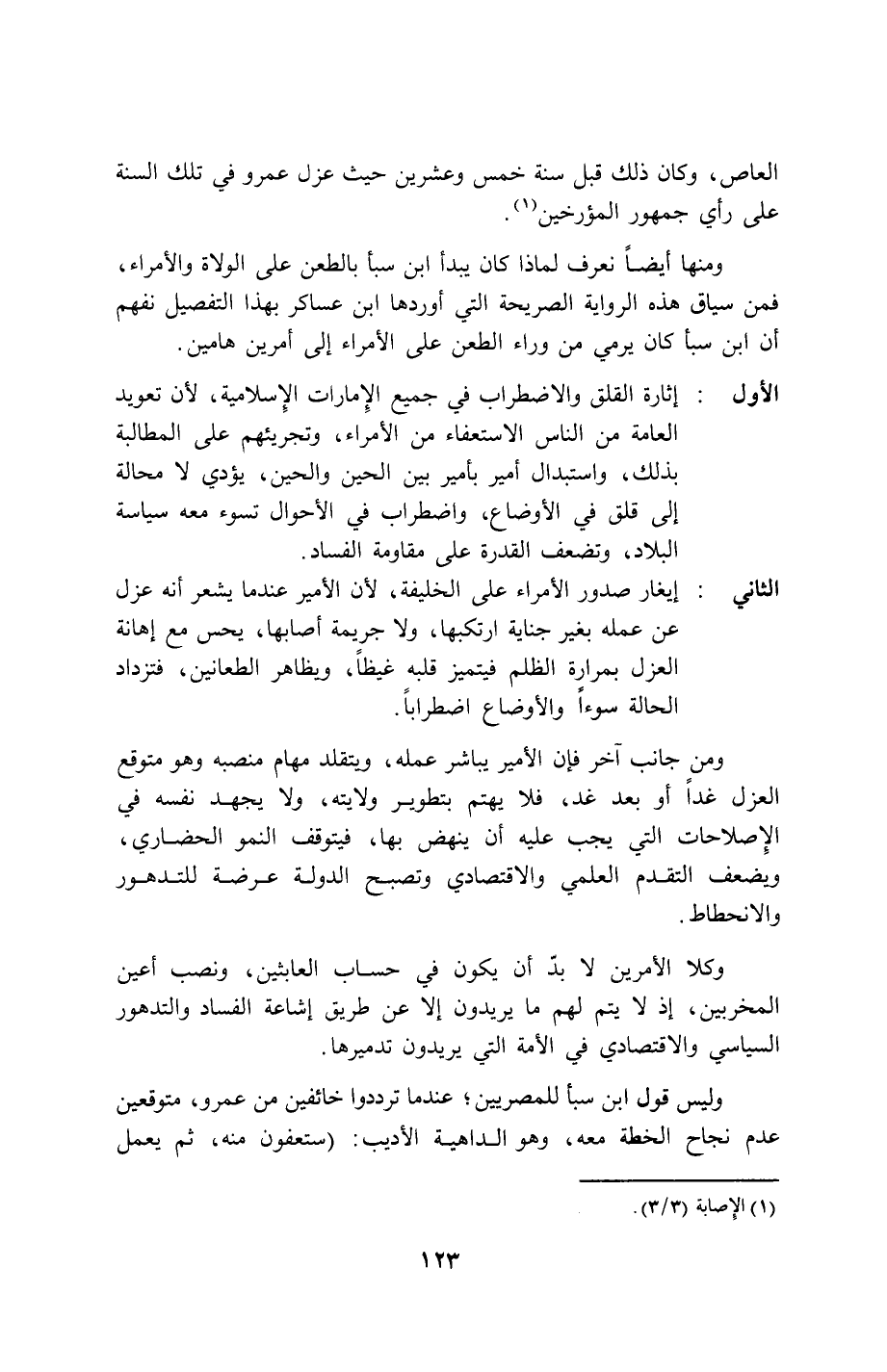 123…العاص، وكان ذلك قبل سنة خمس وعشرين حيث عزل عمرو في تلك السنة على رأي جمهور المؤرخين (1).