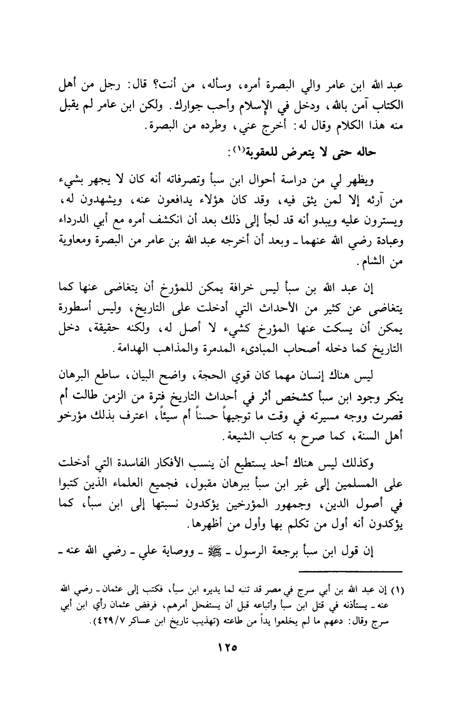إن عبد الله بن سبأ ليس خرافة يمكن للمؤرخ أن يتغاضى عنها كما يتغاضى عن كثير من الأحداث التي أدخلت على التاريخ، وليس أسطورة يمكن أن يسكت عنها المؤرخ كشيء لا أصل له، ولكنه حقيقة، دخل التاريخ كما دخله أصحاب المبادئ المدمرة والمذاهب الهدامة.