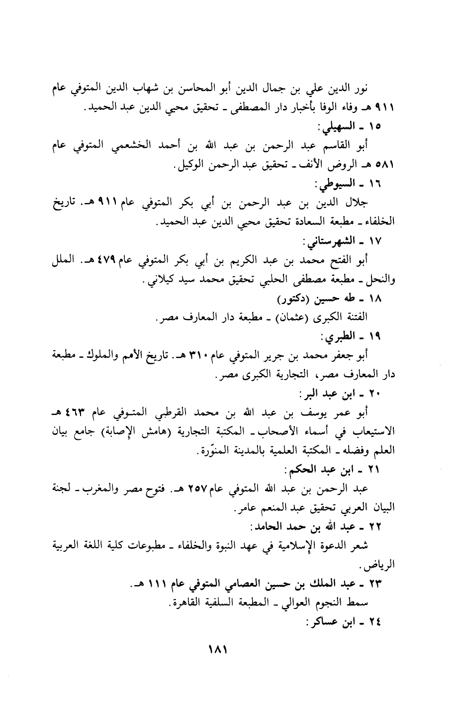 15 - السهيلي: أبو القاسم عبد الرحمن بن عبد الله بن أحمد الخشعمي المتوفي عام 581 هـ الروض الأنف - تحقيق عبد الرحمن الوكيل.