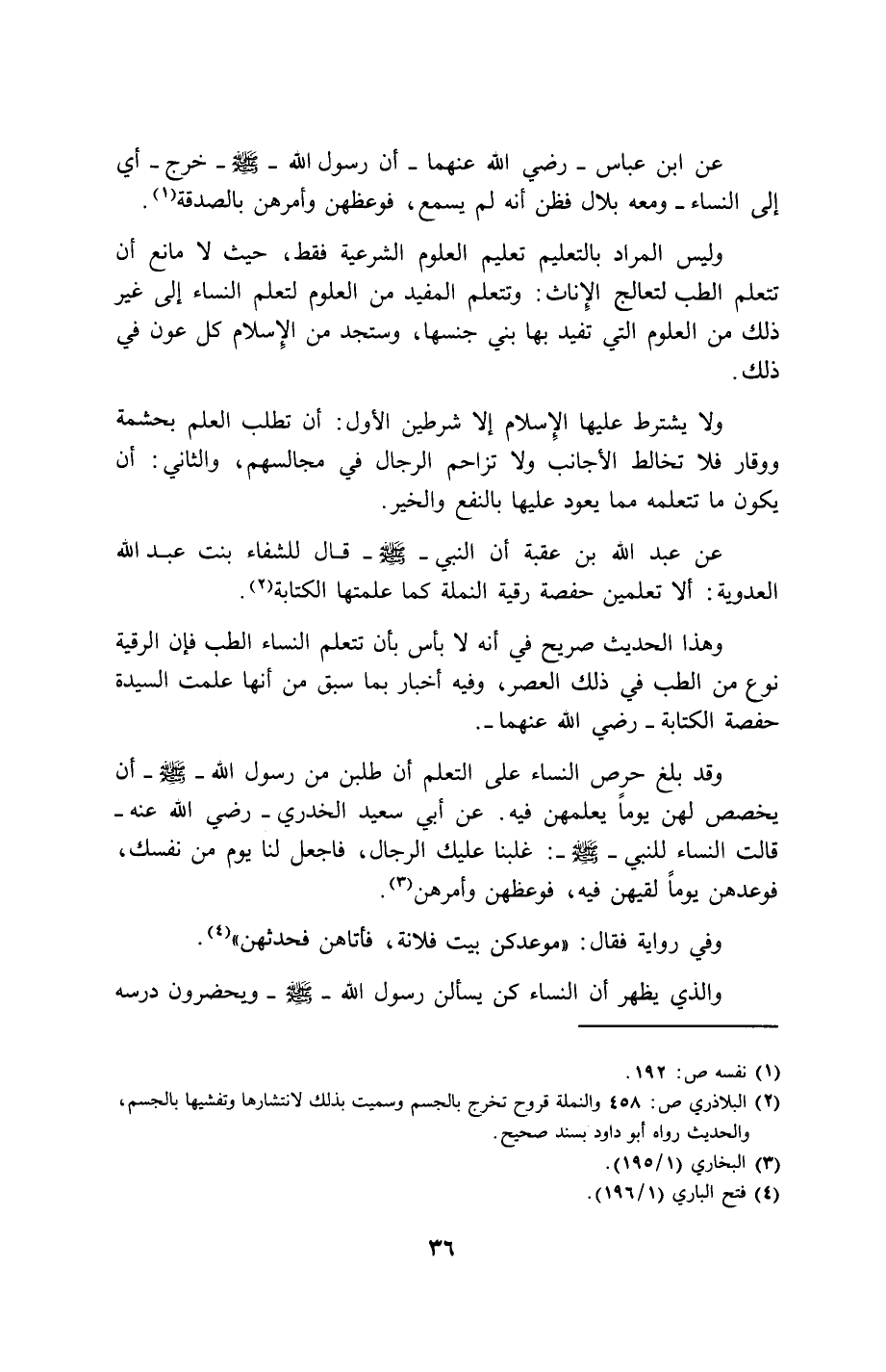 36…عن ابن عباس - رضي الله عنهما - أن رسول الله - صلى الله عليه وسلم - خرج - أي إلى النساء- ومعه بلال فظن أنه لم يسمع، فوعظهن وأمرهن بالصدقة (1).