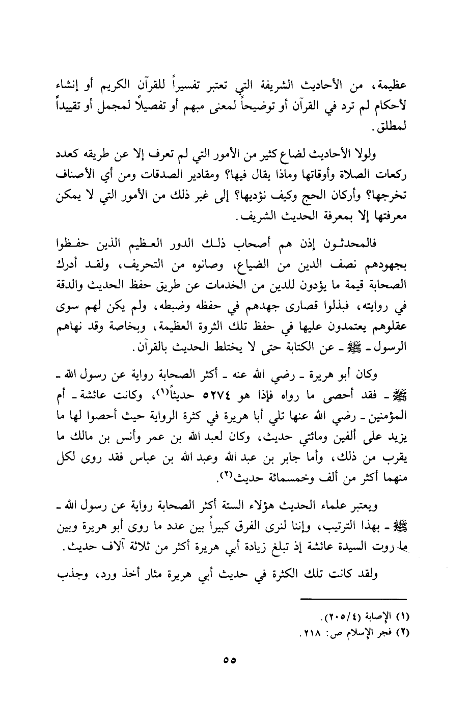 55…عظيمة، من الأحاديث الشريفة التي تعتبر تفسيراً للقرآن الكريم أو إنشاء لأحكام لم ترد في القرآن أو توضيحاً لمعنى مبهم أو تفضيلاً لمجمل أو تقييداً لمطلق.