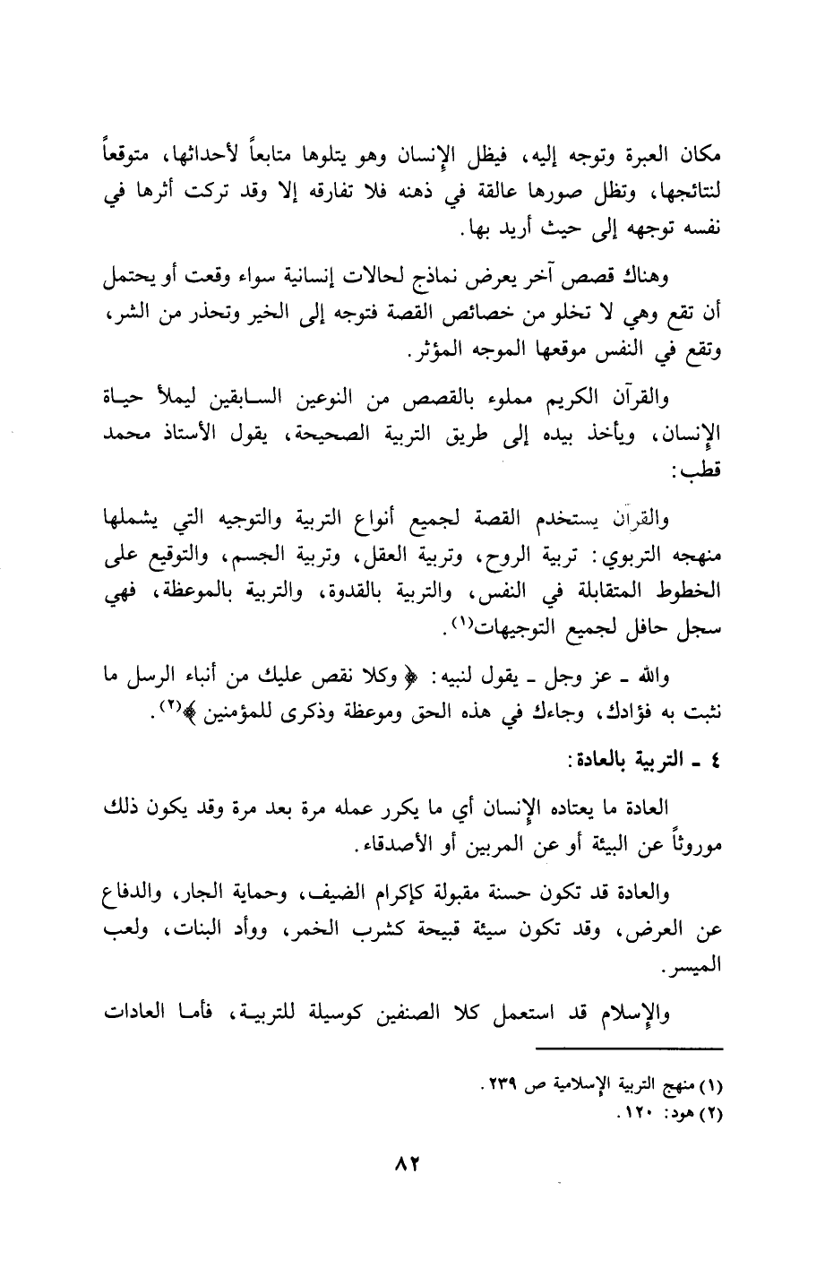 والإسلام قد استعمل كلا الصنفين كوسيلة للتربية، فأما العادات…