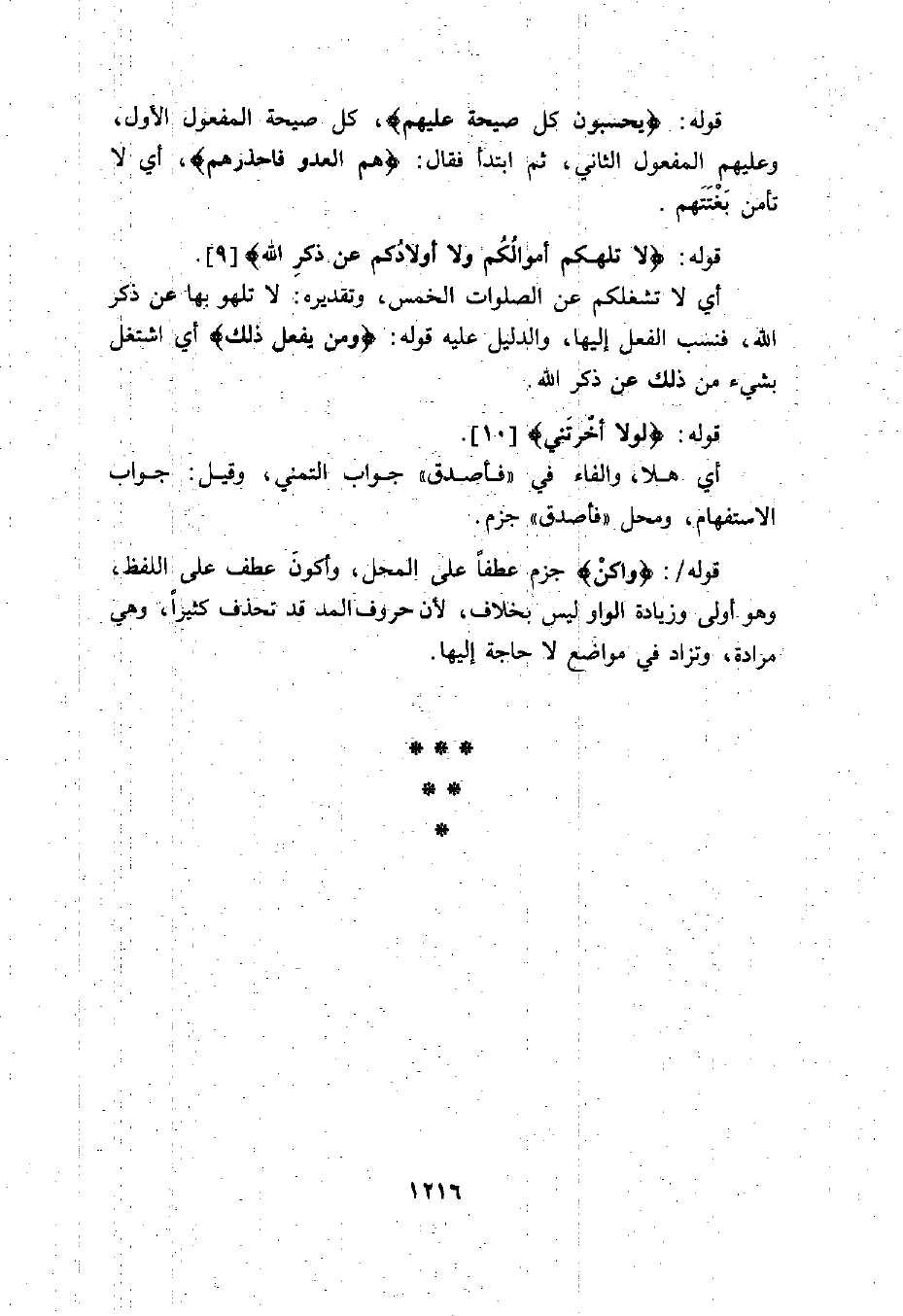 قوله: (لَا تُلْهِكُمْ أَمْوَالُكُمْ وَلَا أَوْلَادُكُمْ عَنْ ذِكْرِ اللَّهِ) .