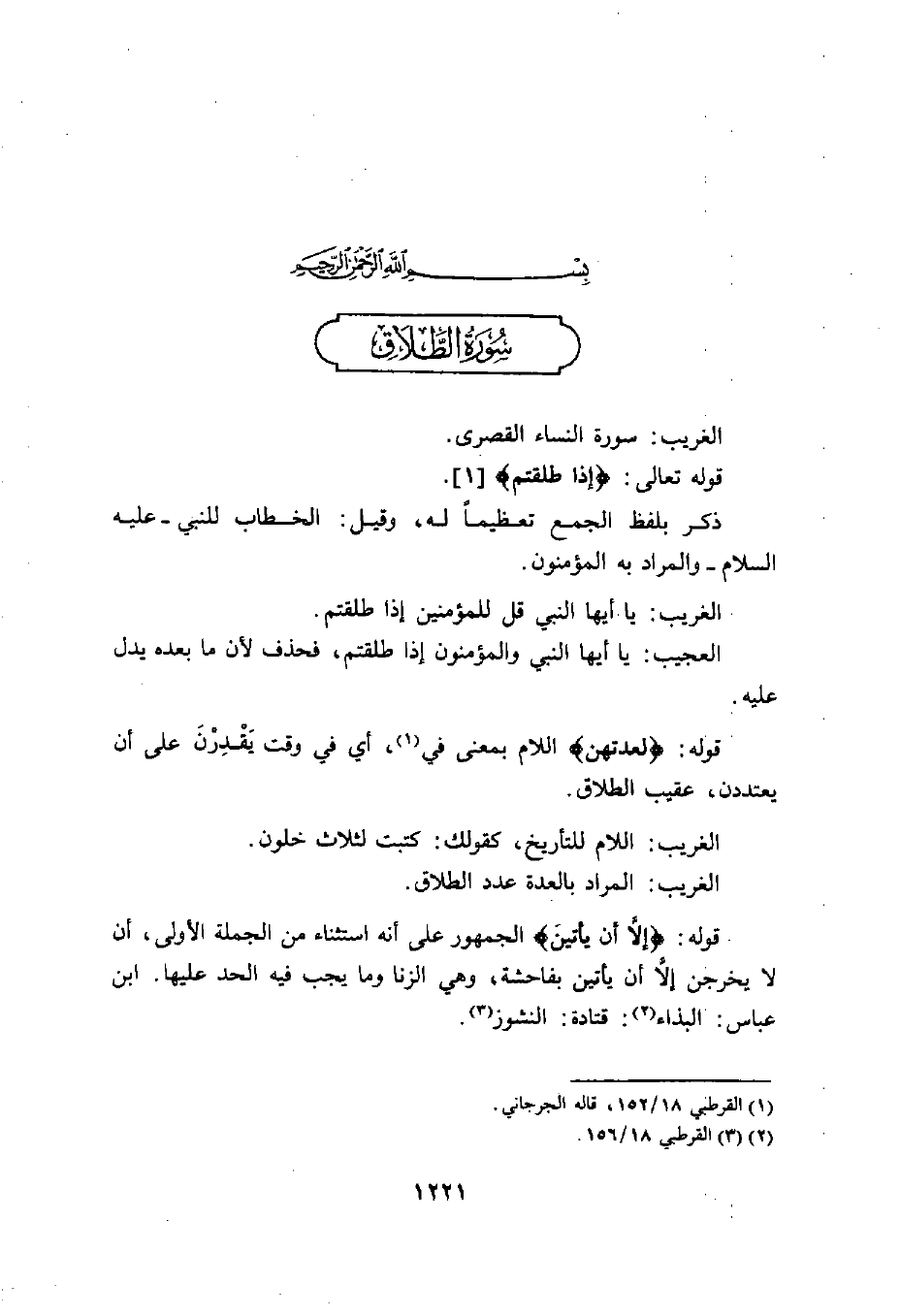 الغريب: يا أيها النبي قل للمؤمنين إذا طلقتم.