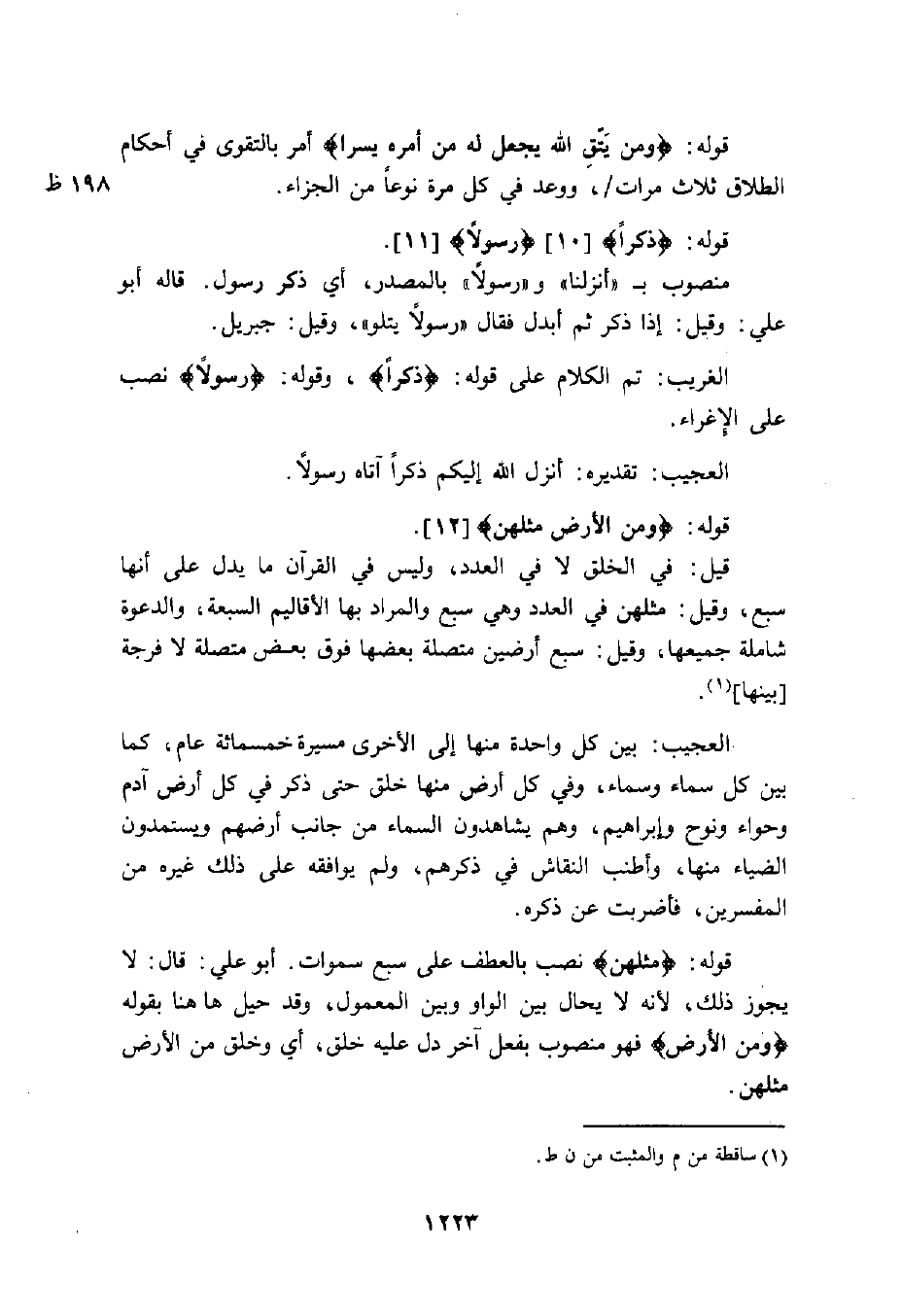 قوله: (مِثْلَهُنَّ) نصب بالعطف على سبع سموات. أبو علي: قال: لا