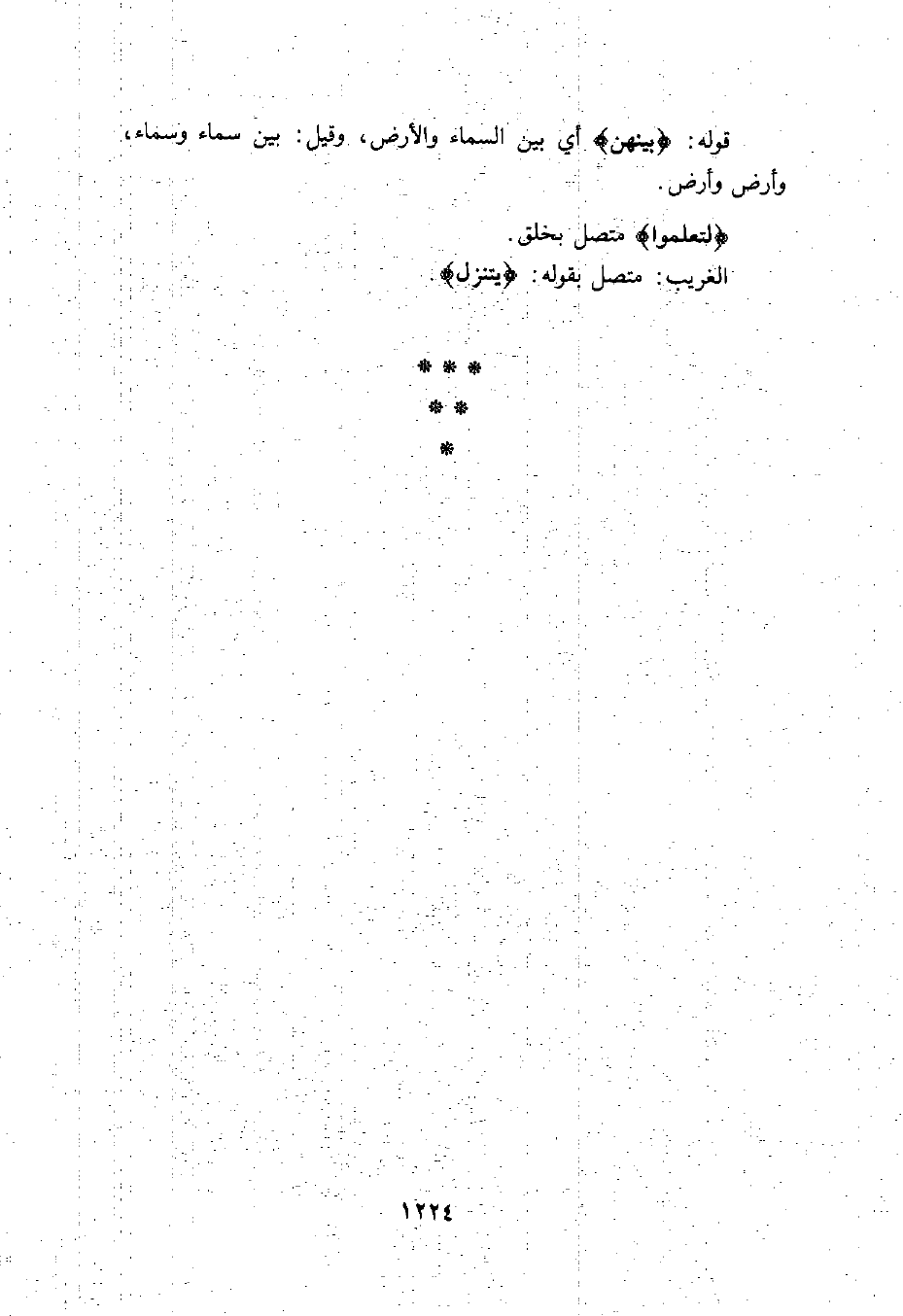 قوله: (بَيْنَهُنَّ) أي بين السماء والأرض، وقيل: بين سماء وسماء.